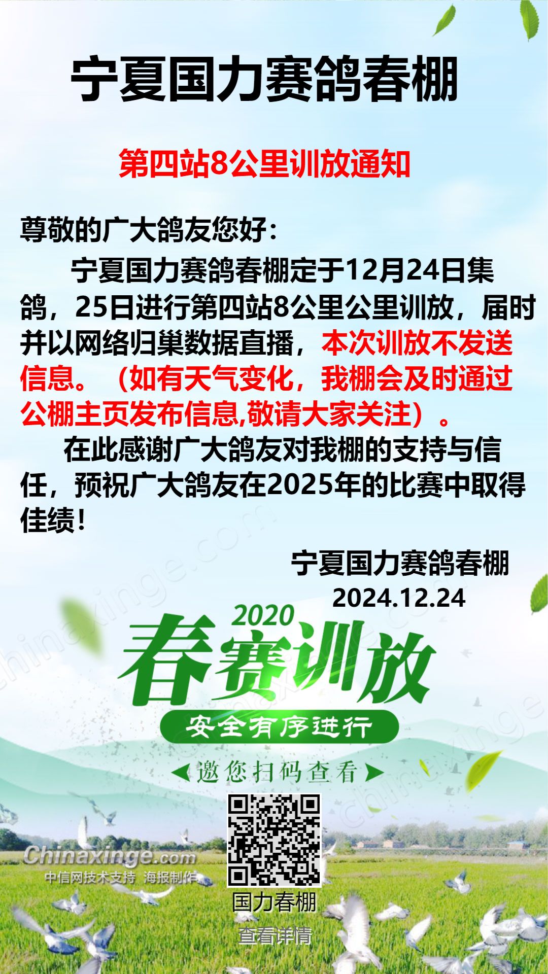 宁夏国力赛鸽公棚(春棚)高级会员春棚