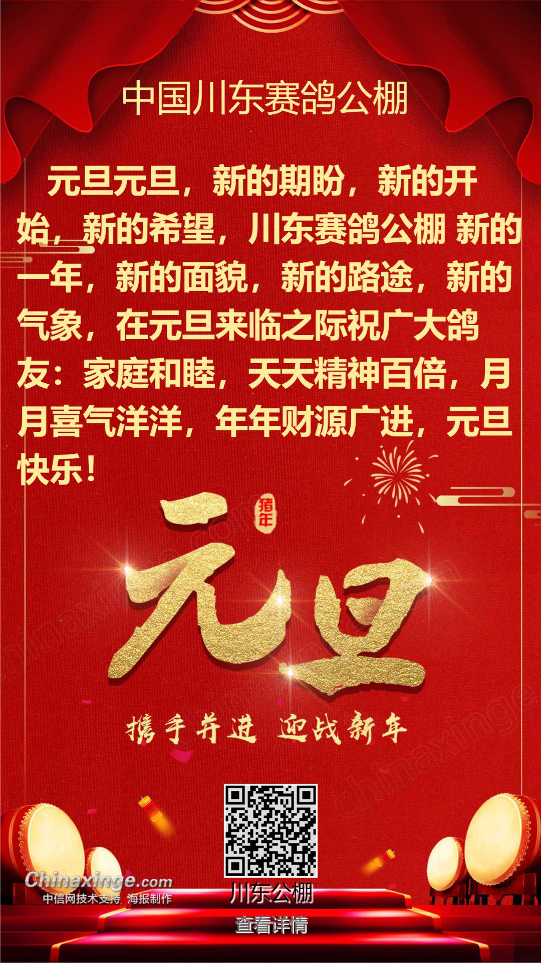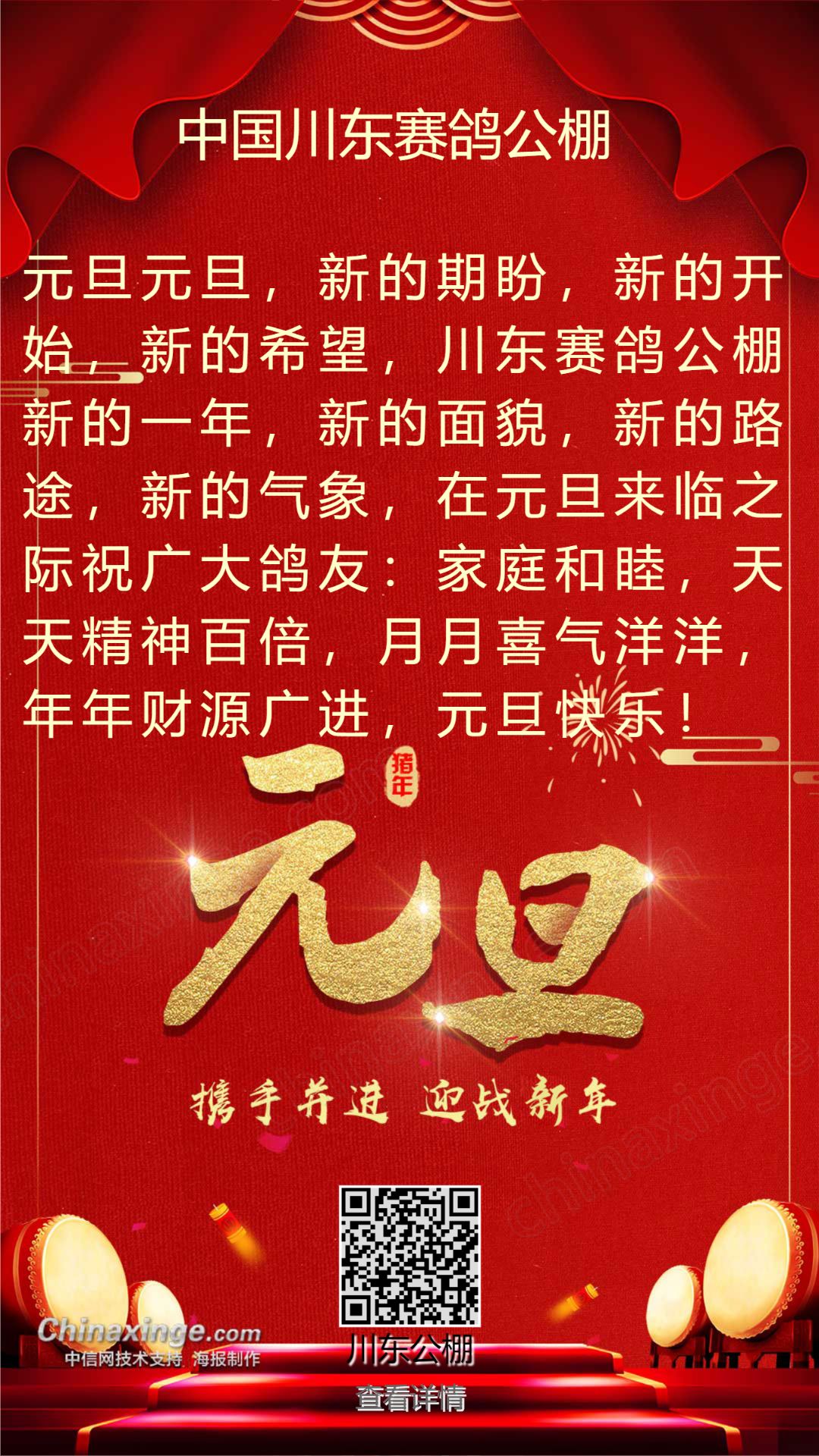 中国川东赛鸽公棚祝全国鸽友元旦快乐!