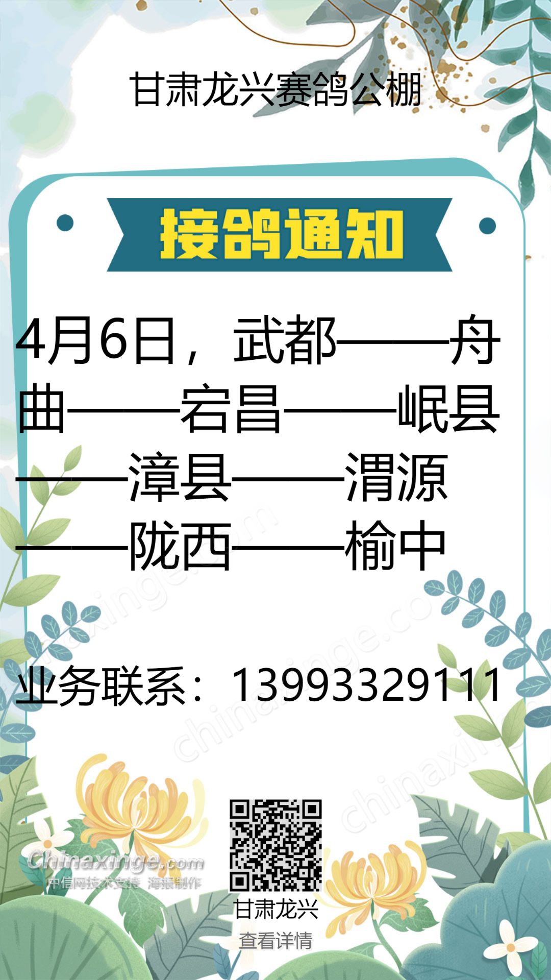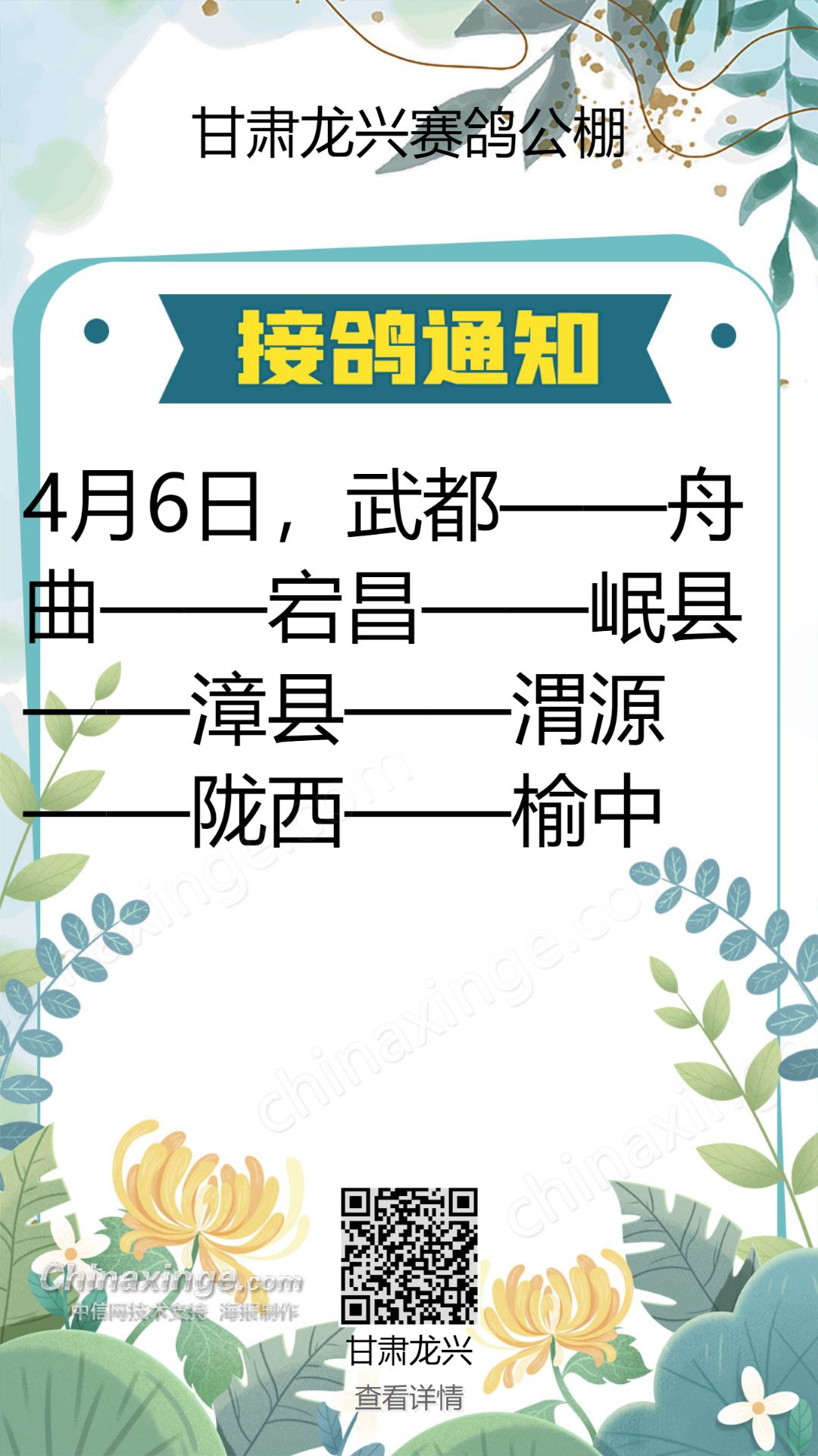 甘肃龙兴赛鸽公棚4月6日收鸽路线图
