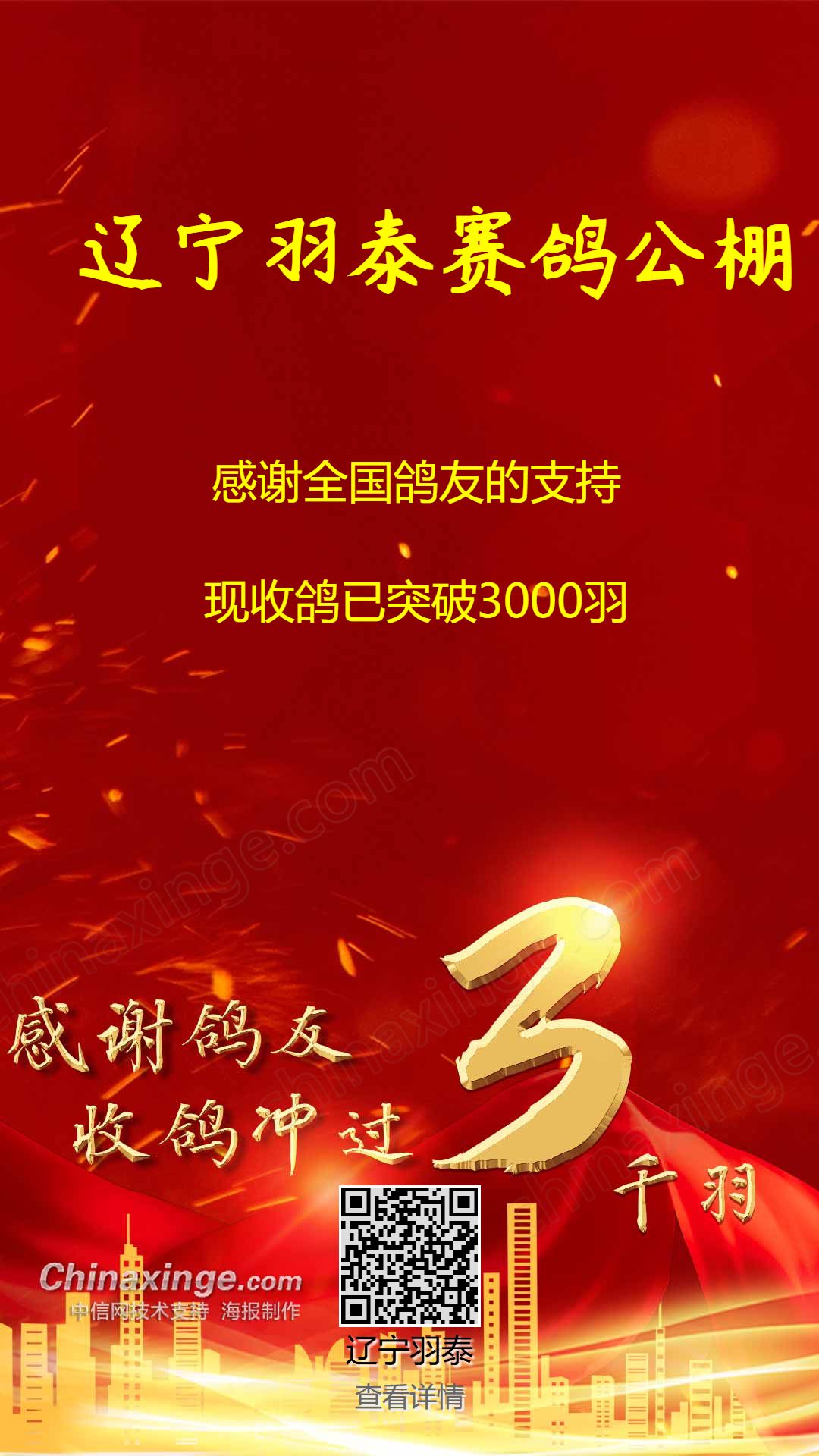 喜报:辽宁羽泰赛鸽公棚收鸽突破3000羽