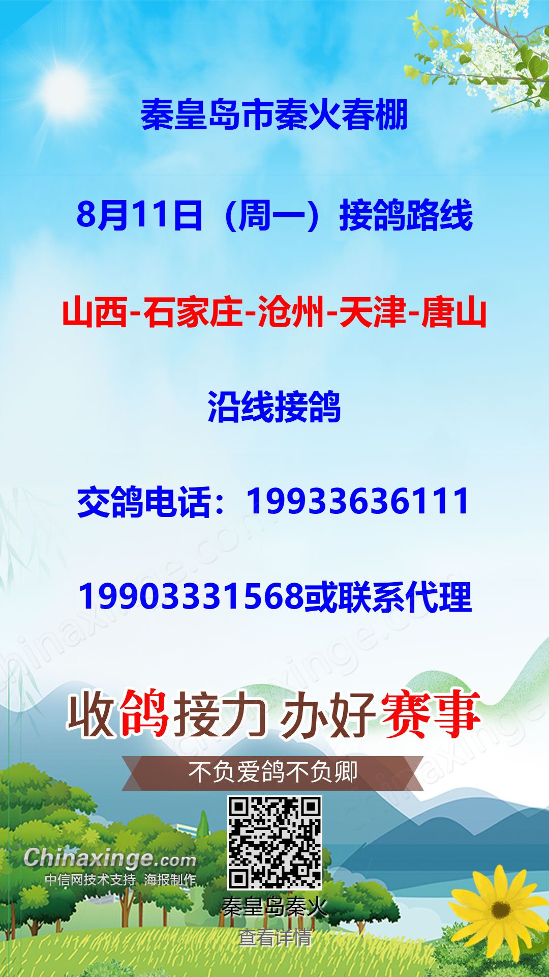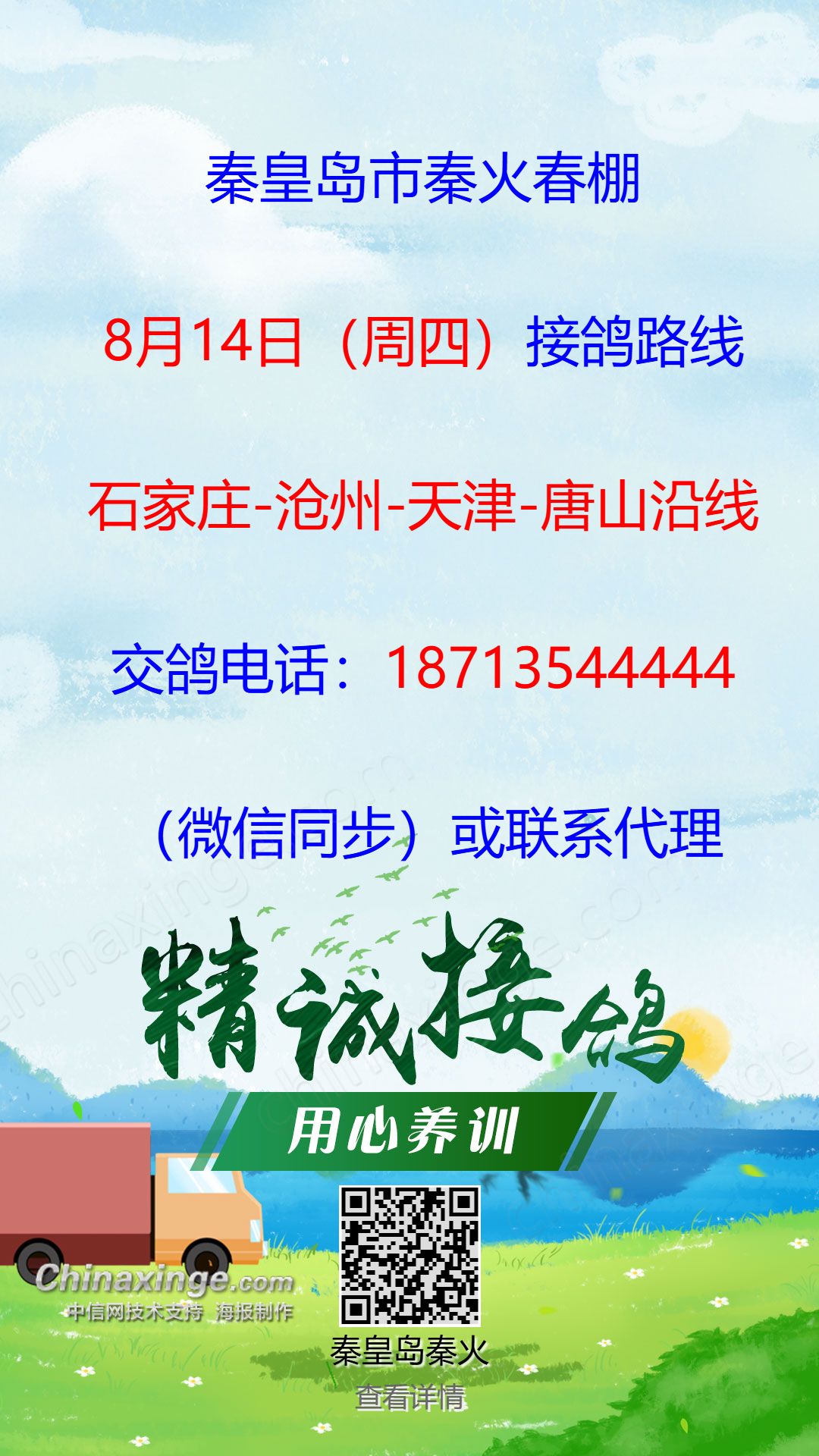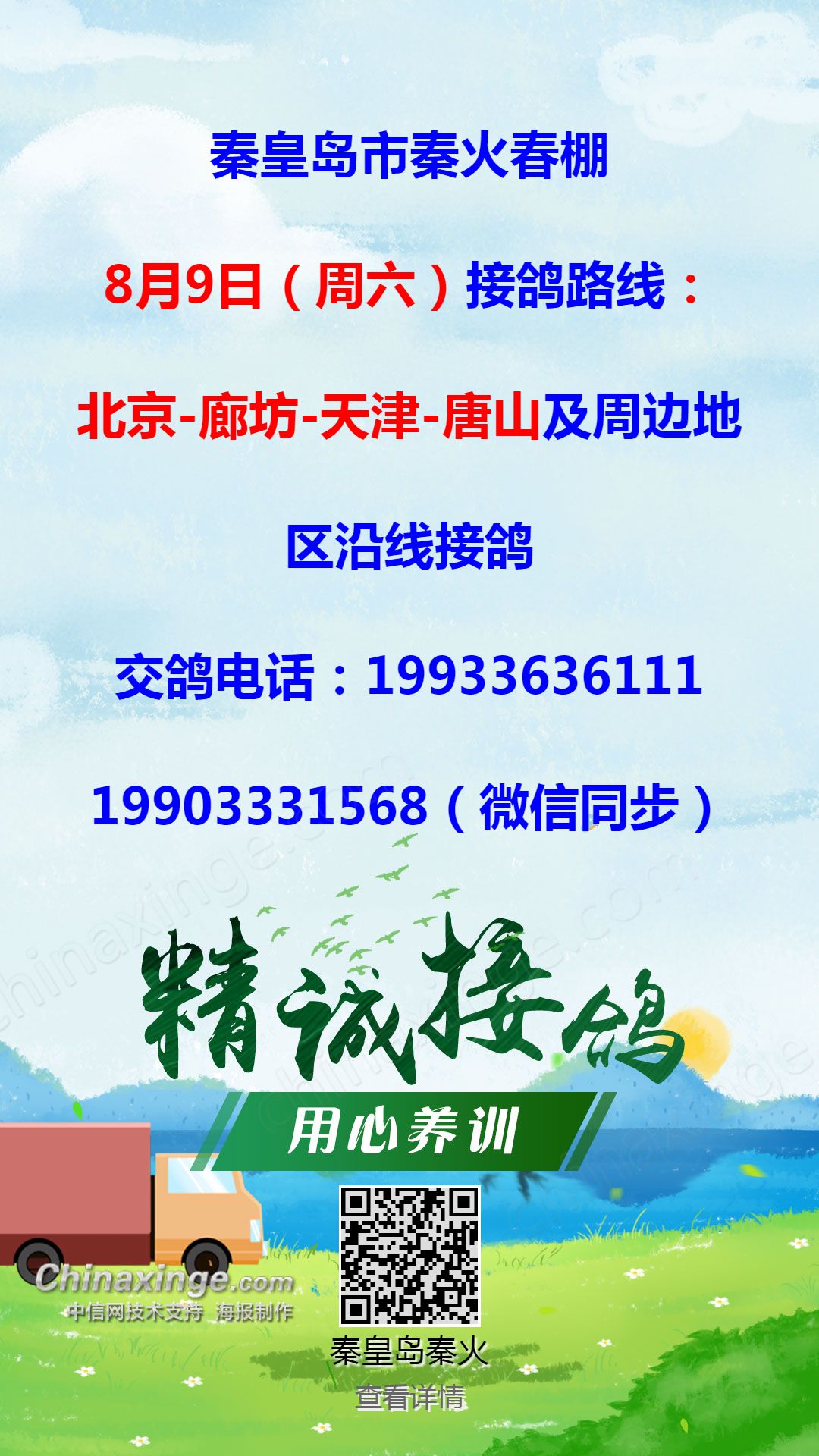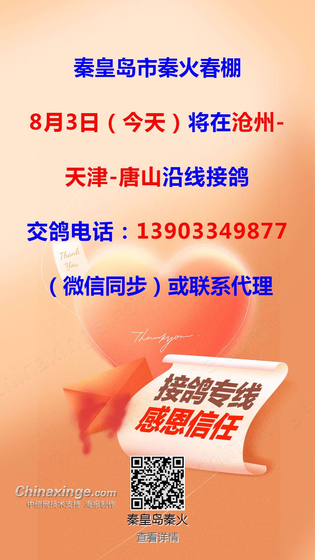 8月3日(今天)将在沧州-天津-唐山沿线接鸽