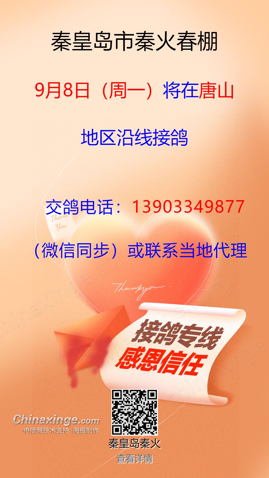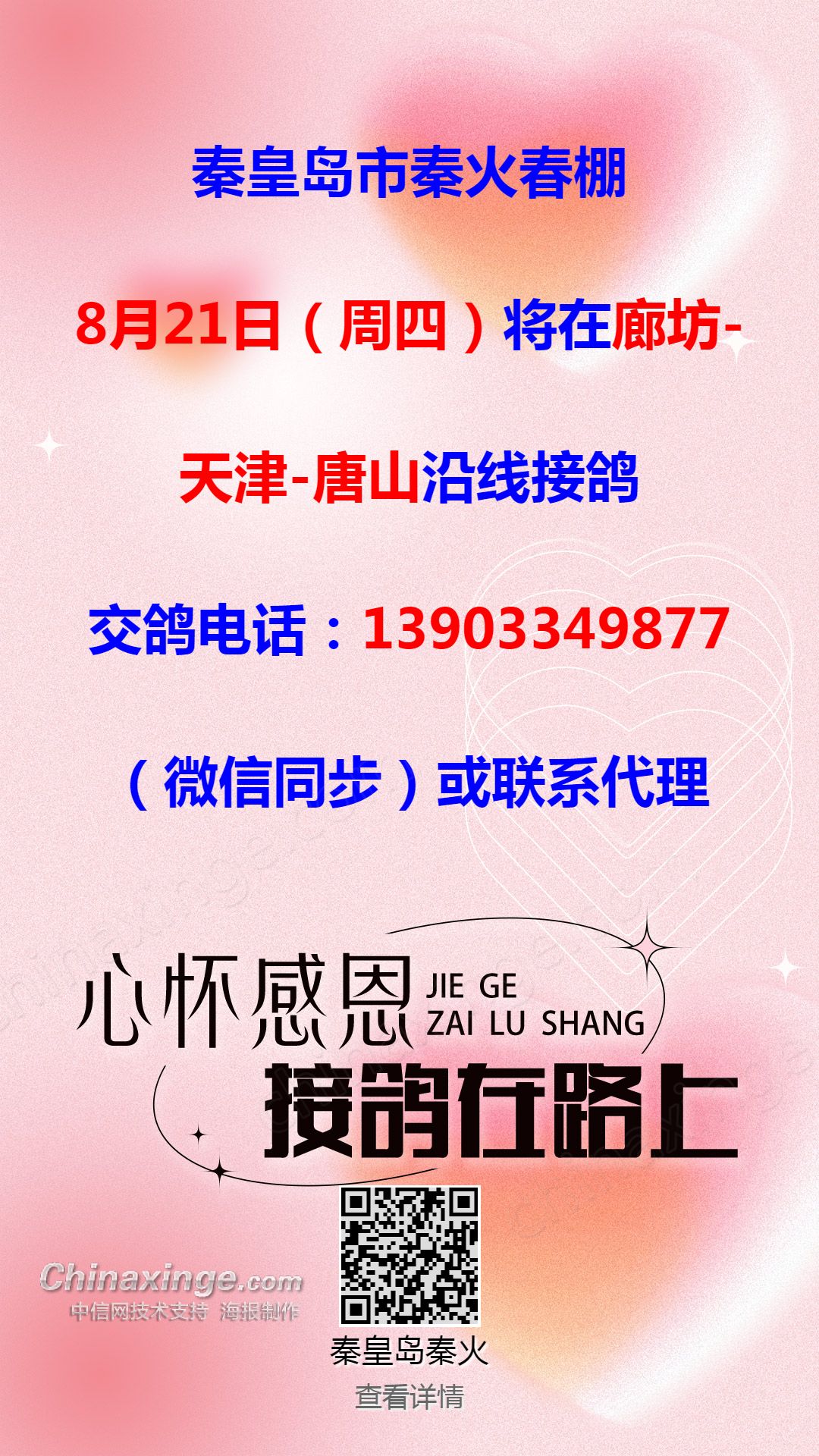 8月21日(周四)将在廊坊-天津-唐山沿线接鸽