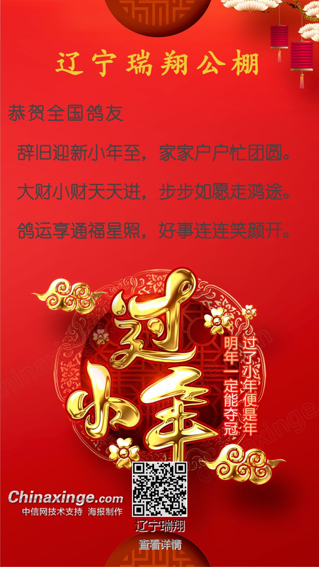辽宁瑞翔赛鸽公棚祝全国鸽友小年快乐