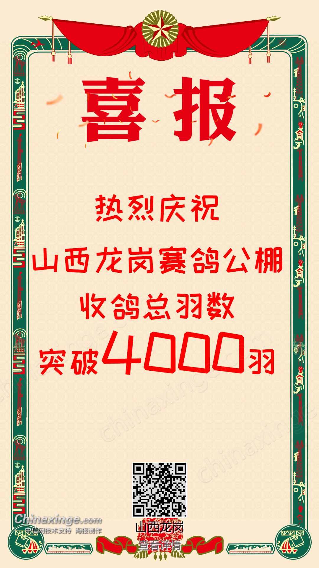 热烈庆祝 山西龙岗赛鸽公棚 收鸽羽数突破四千羽