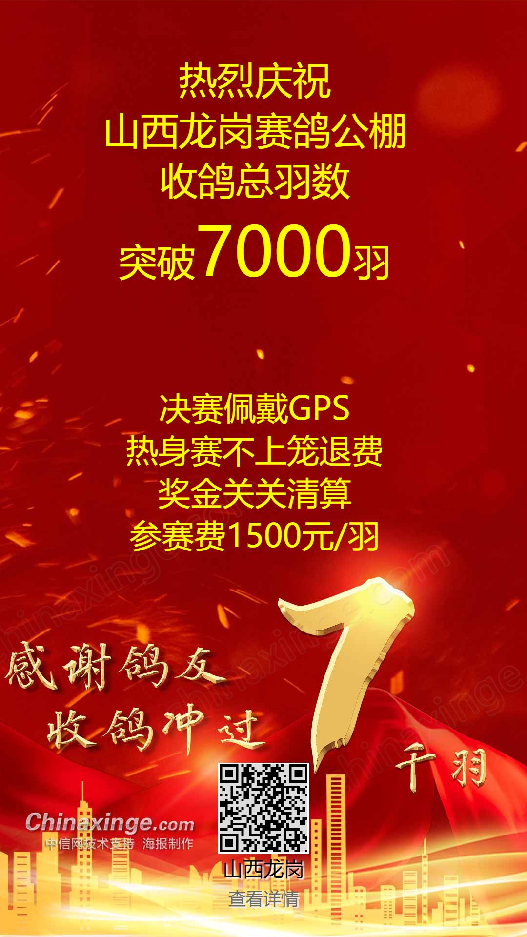 热烈庆祝 山西龙岗赛鸽公棚 收鸽总羽数 突破7000羽