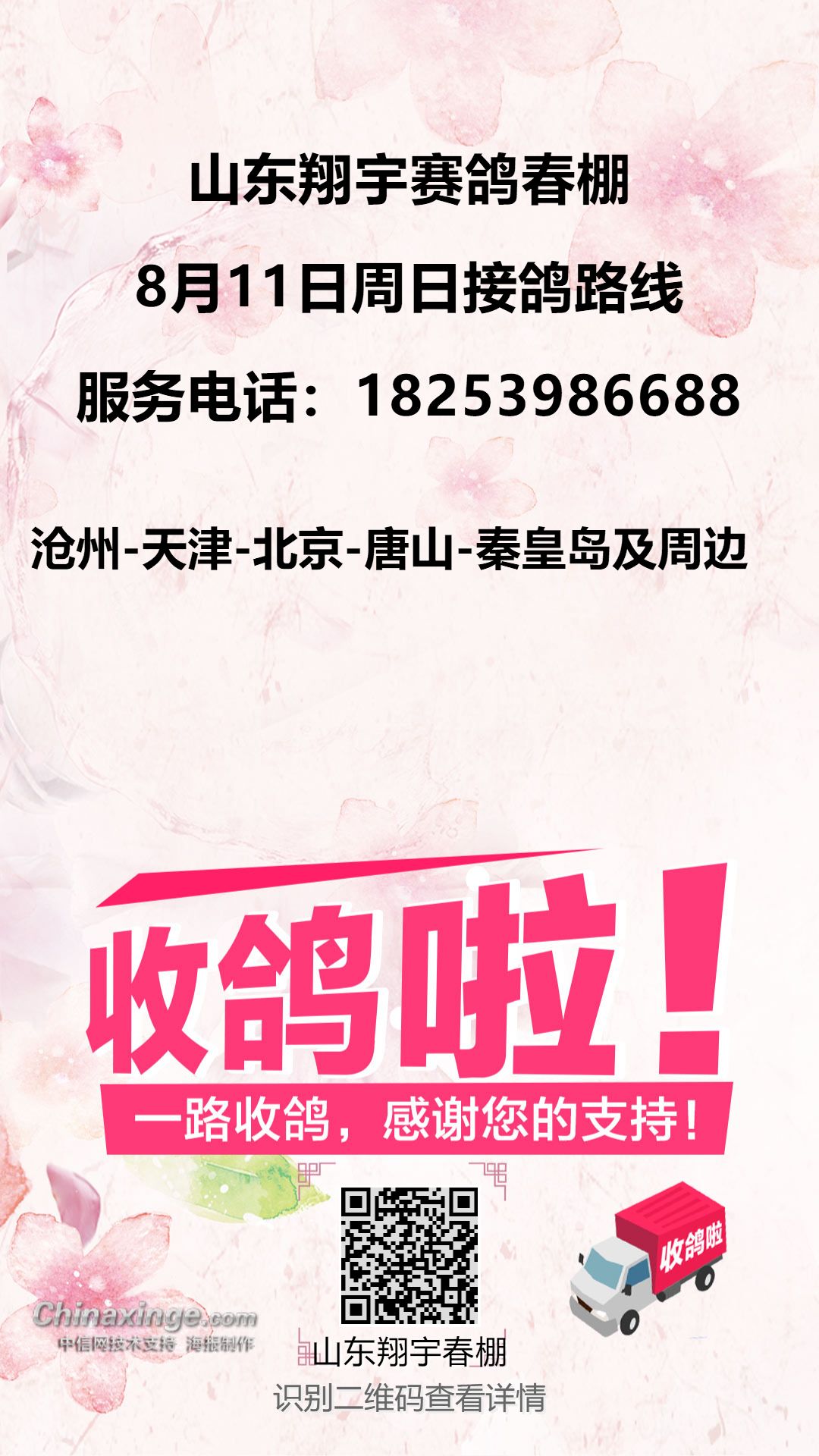 天津-北京-唐山-秦皇岛线8月11日周日接鸽