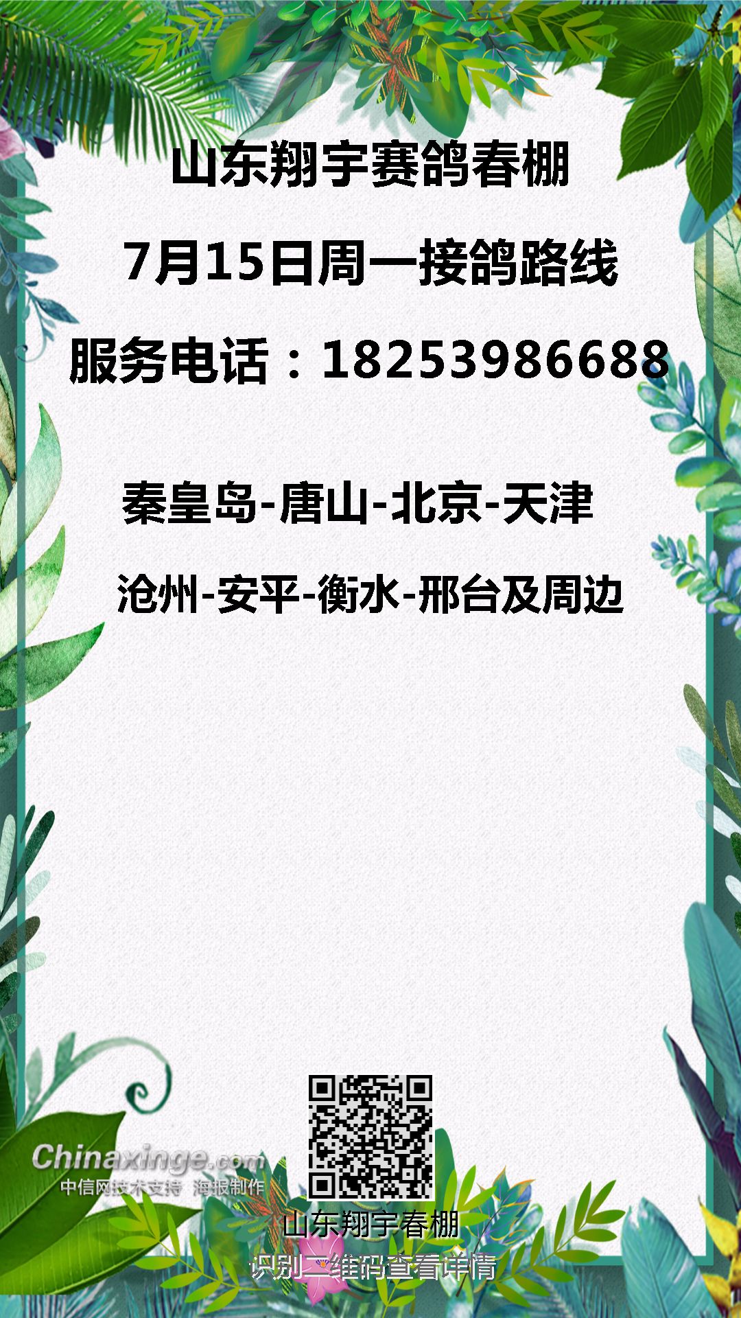 唐山-秦皇岛-北京-天津-河北线7月15日接鸽