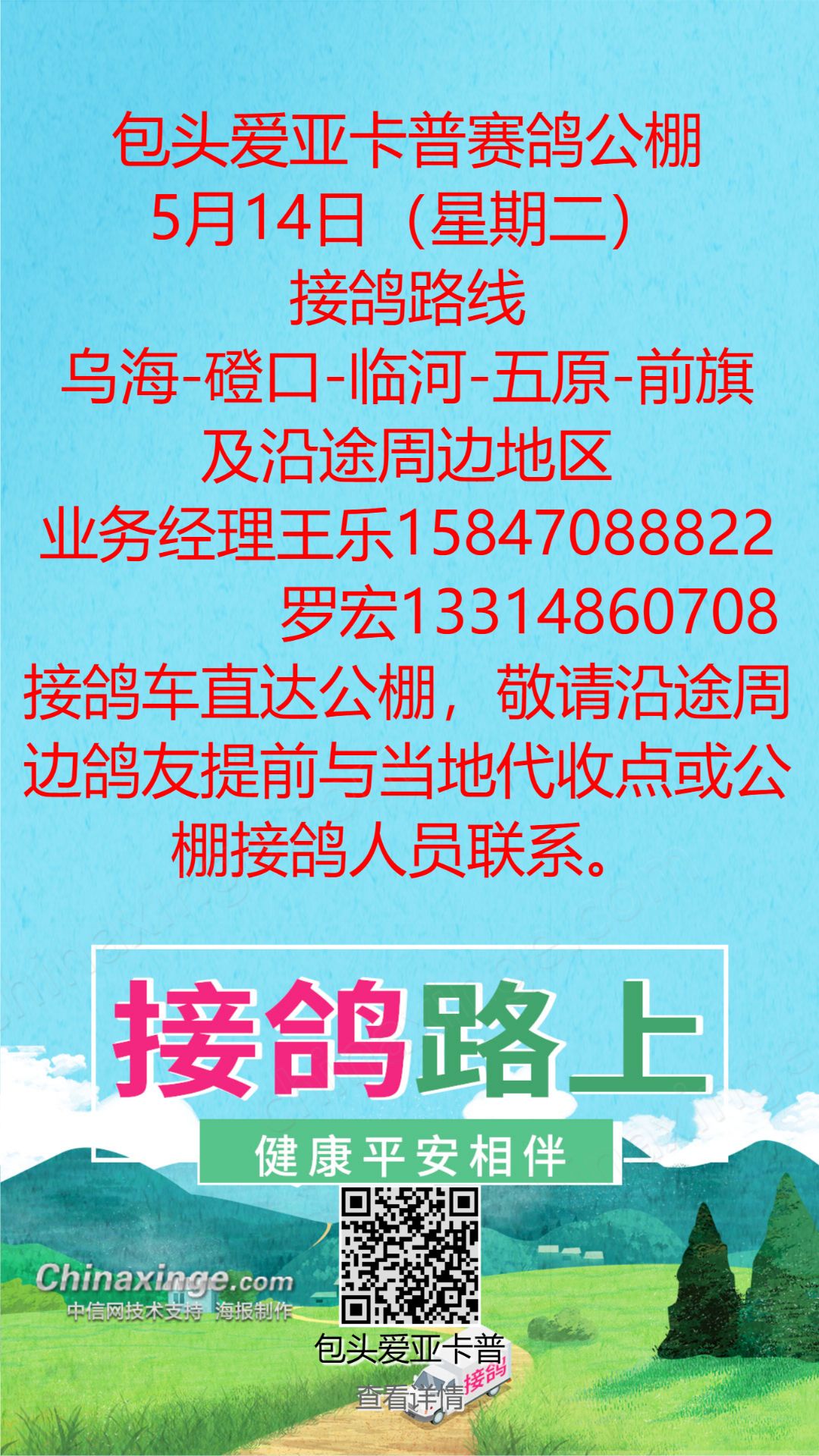 包头爱亚卡普公棚5月5日-6日山西地区接鸽