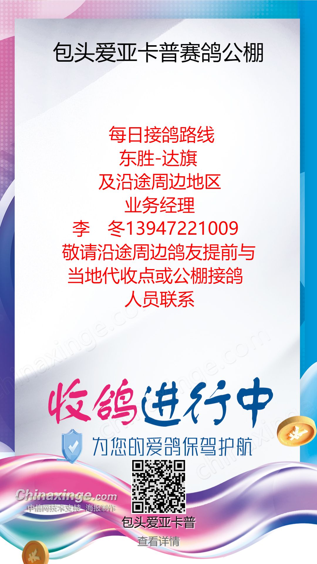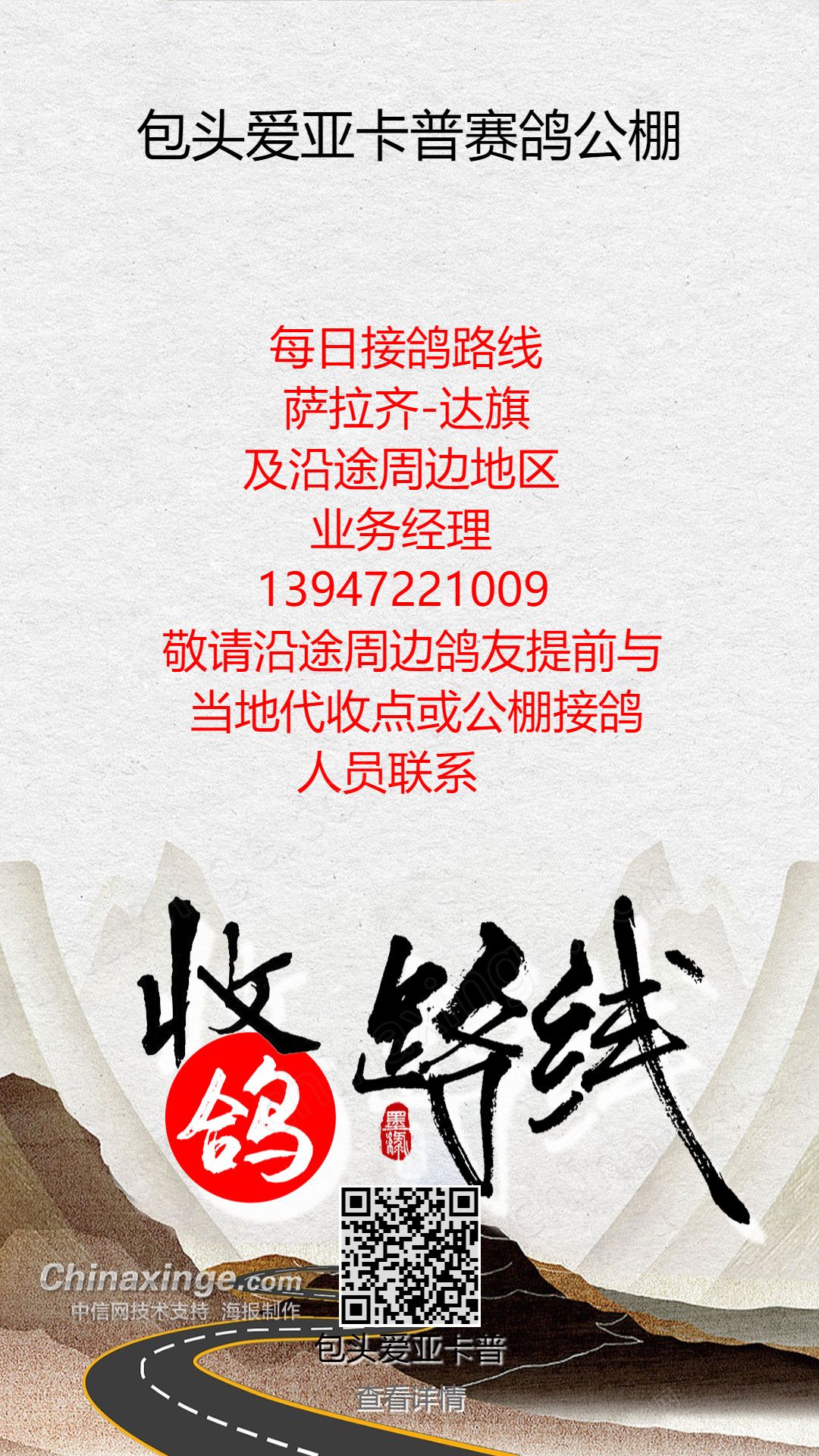 包头爱亚卡普每日接鸽路线乌海-临河-前旗