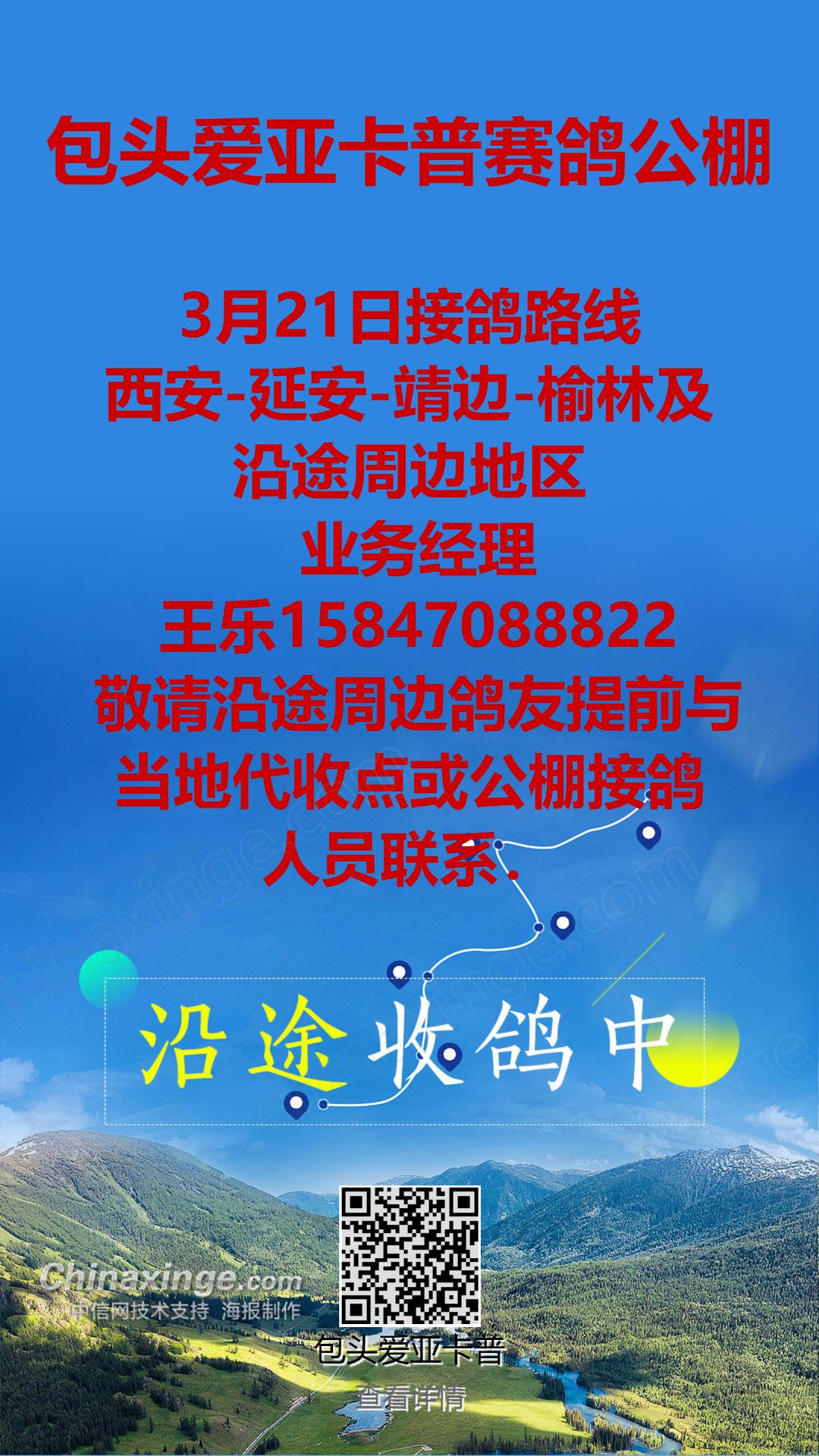 包头爱亚卡普公棚3月21日陕西地区接鸽
