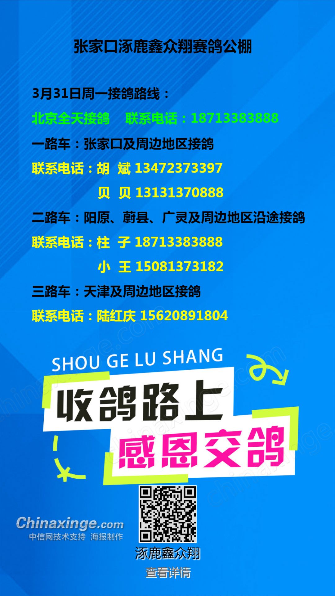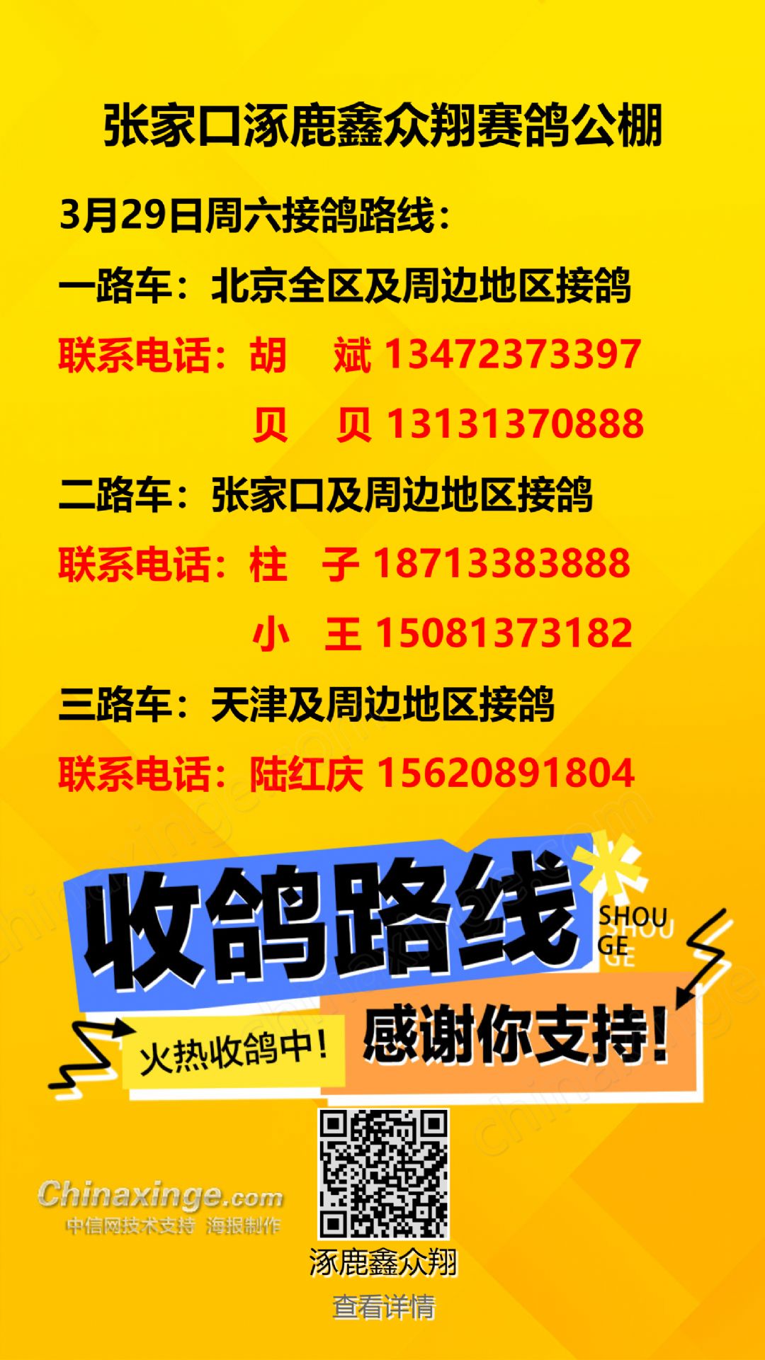 3月29日周六接鸽路线