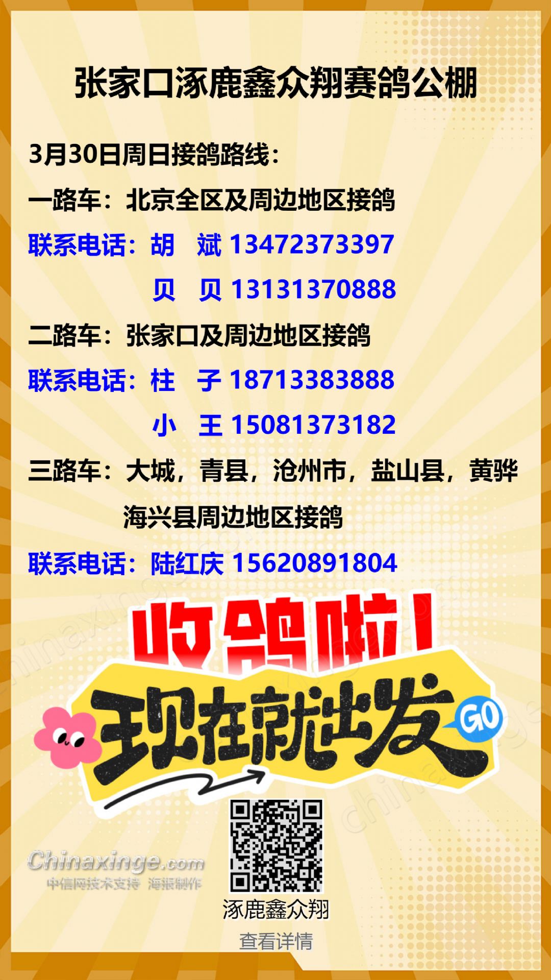 3月30日周日接鸽路线