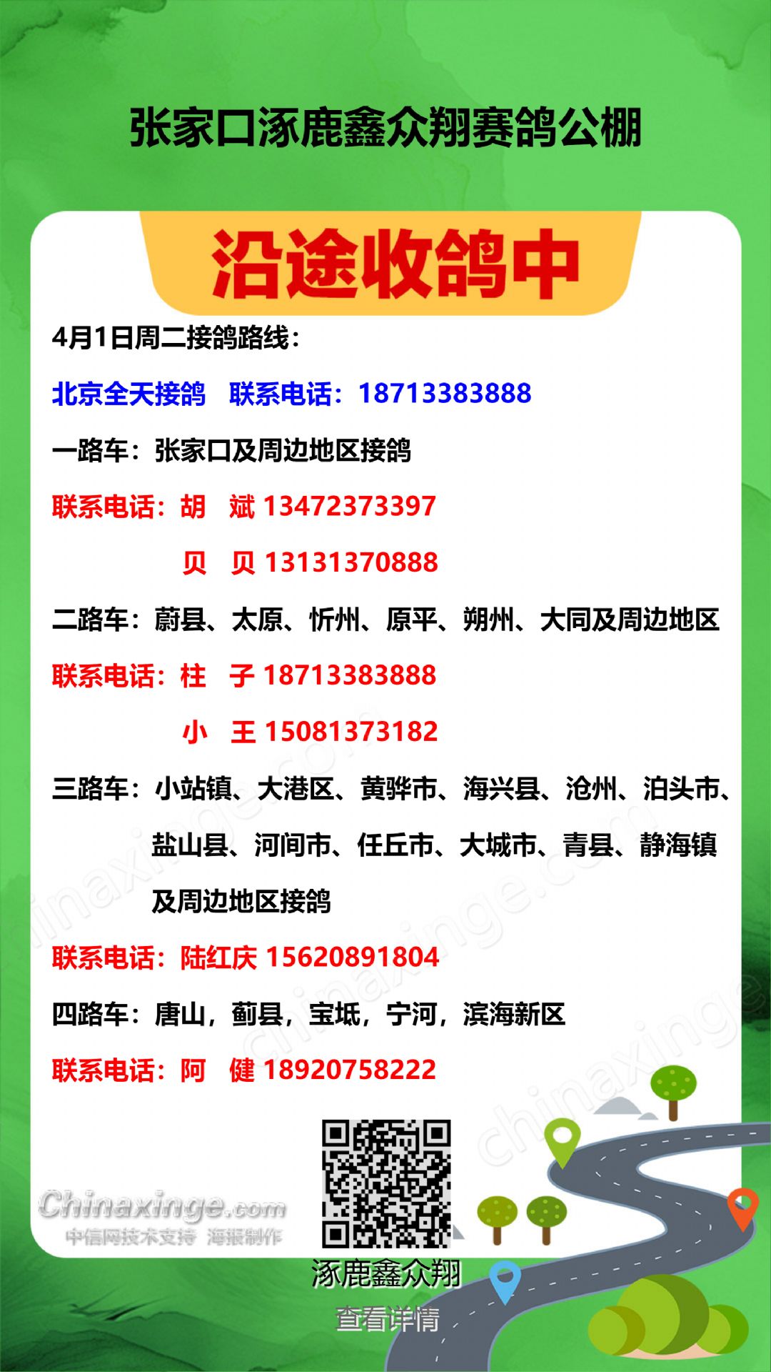 4月1日周二接鸽路线