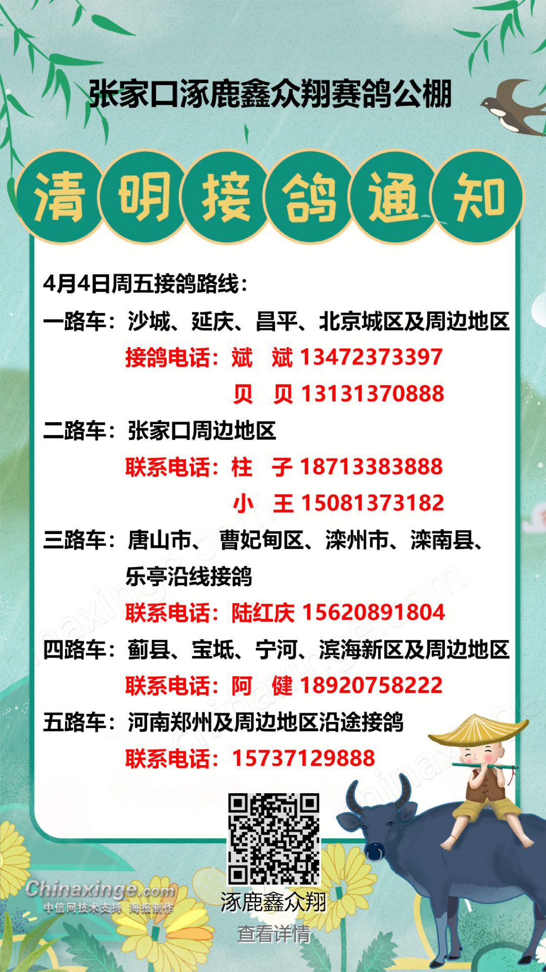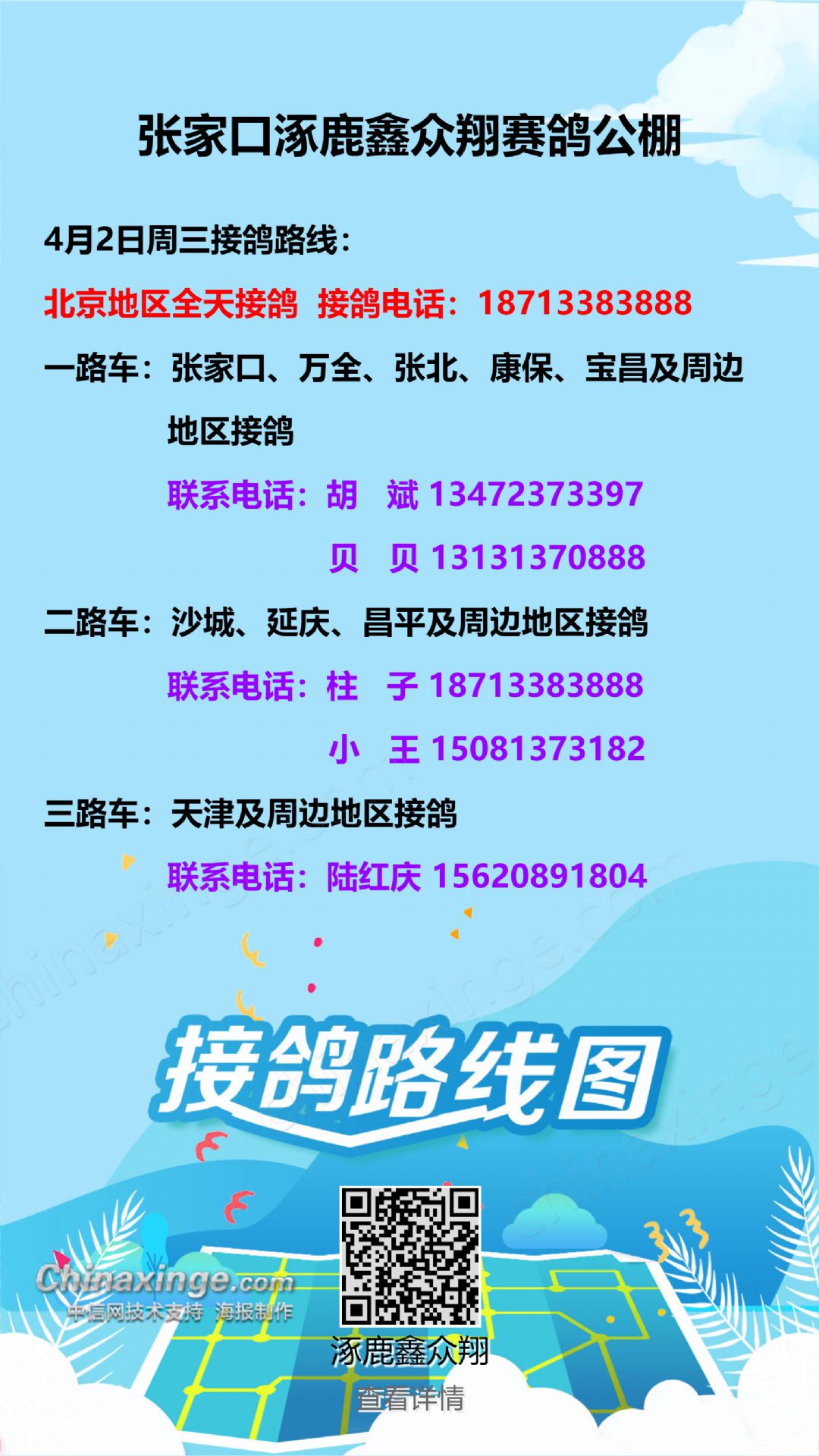 4月2日周三接鸽路线