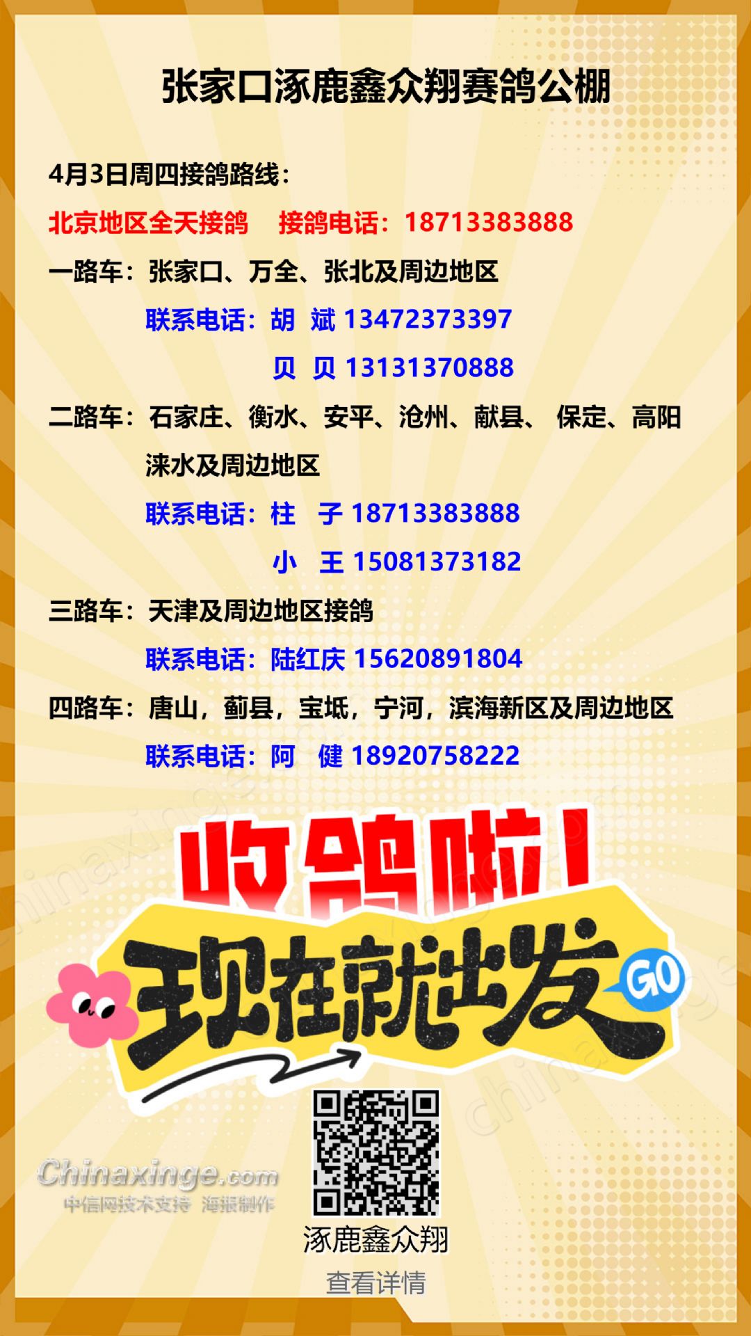 4月3日周四接鸽路线