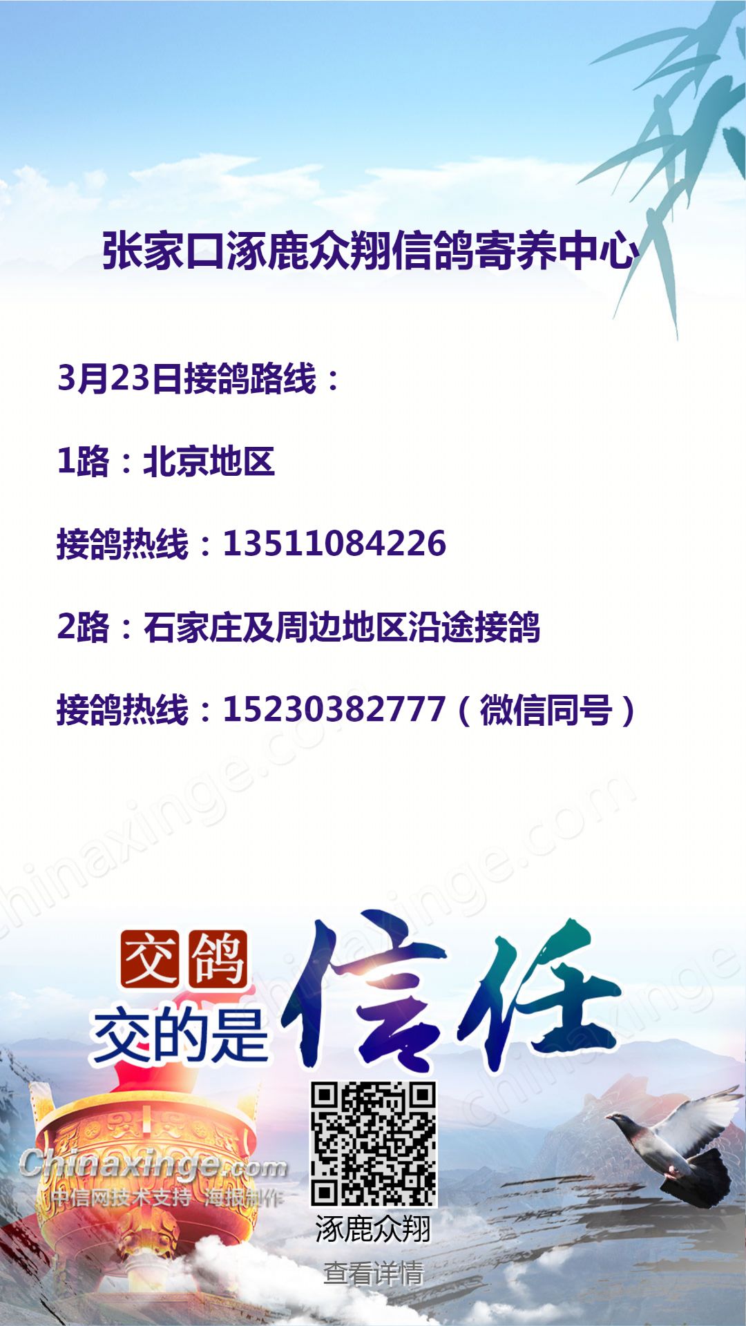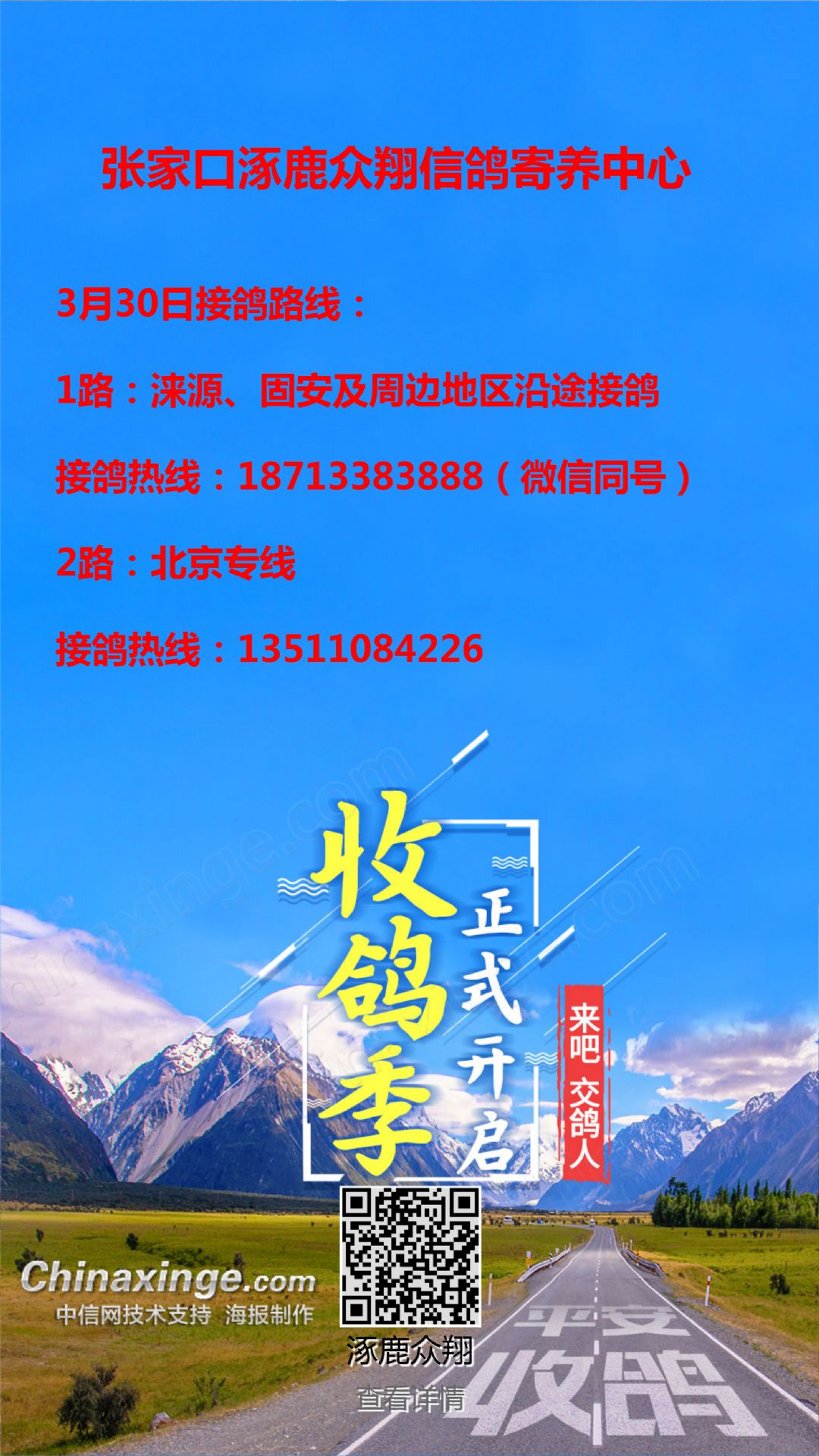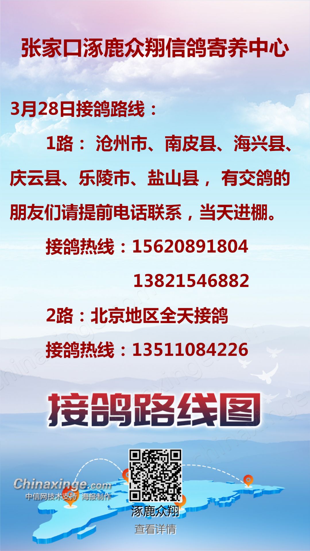 涿鹿众翔接鸽路线
