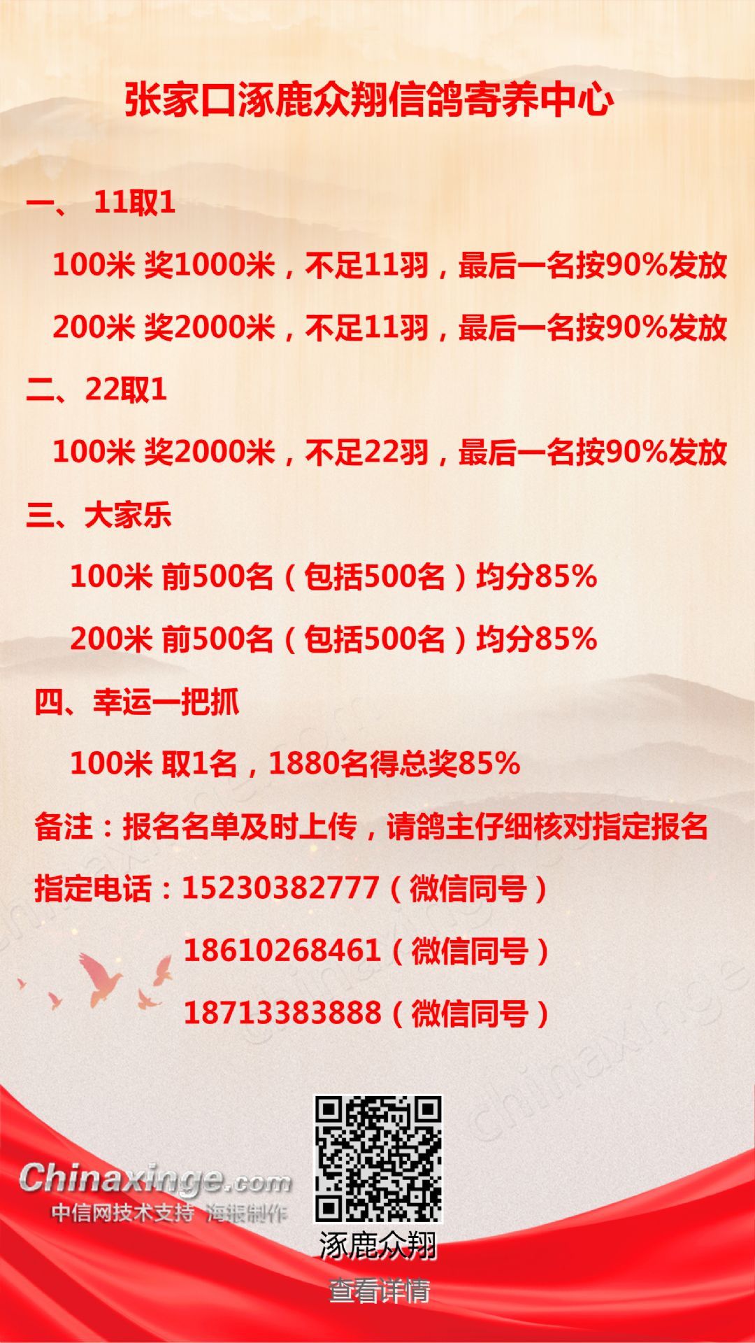 众翔公棚60公里娱乐赛规程(只限鸽主指定)