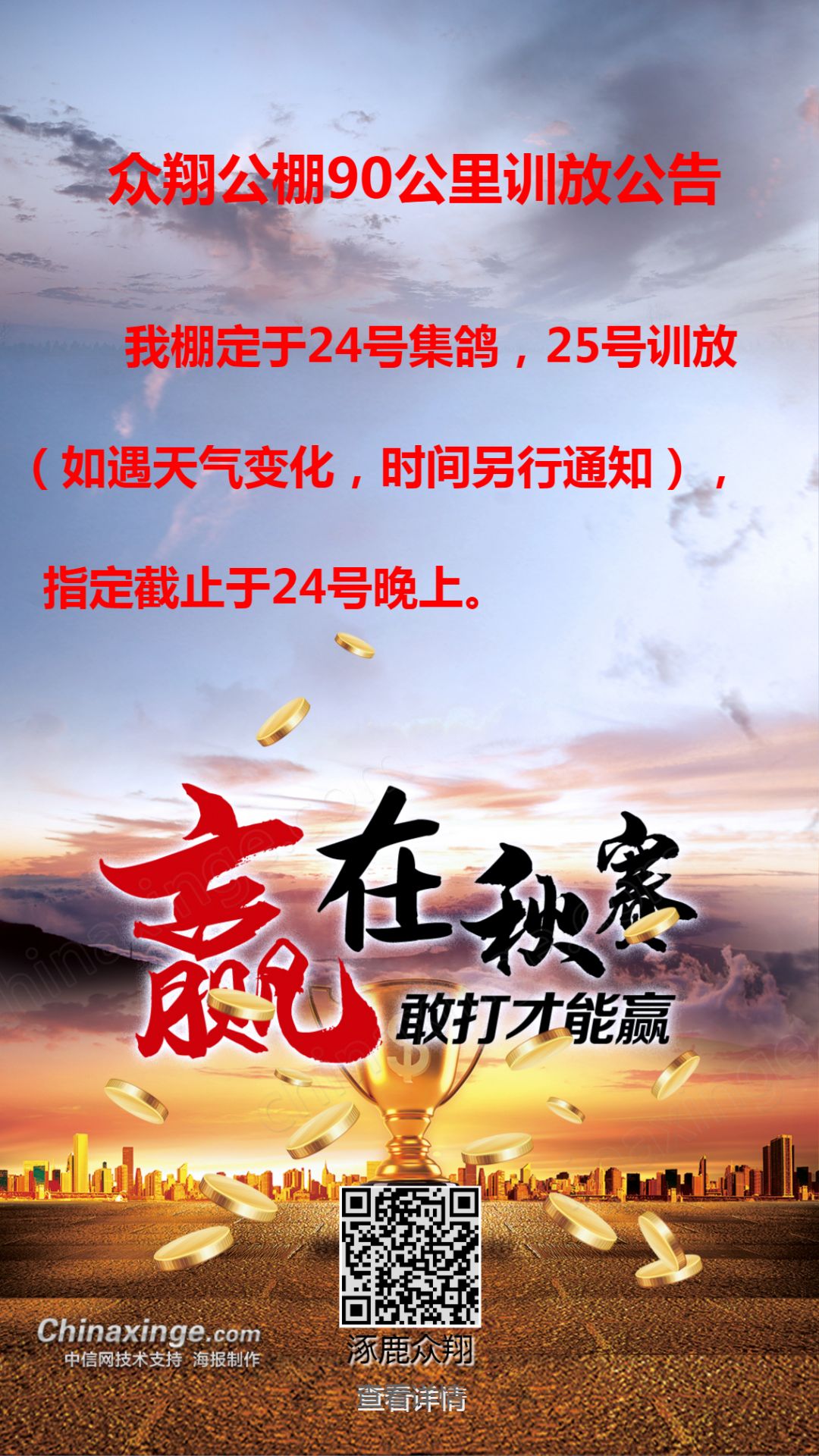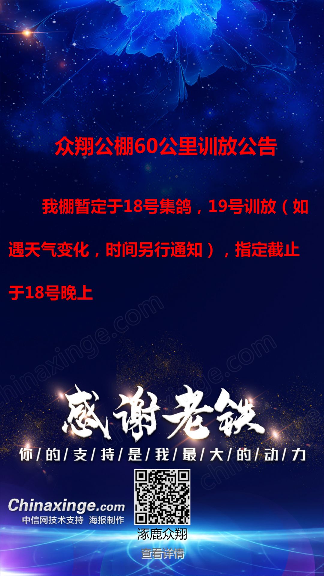 众翔公棚90公里训放公告