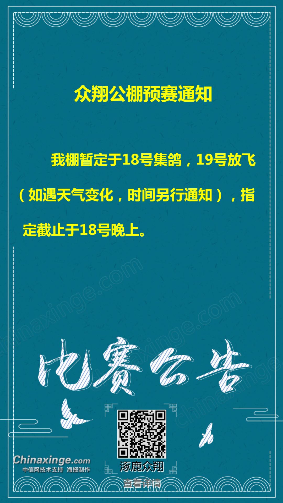 众翔公棚预赛通知