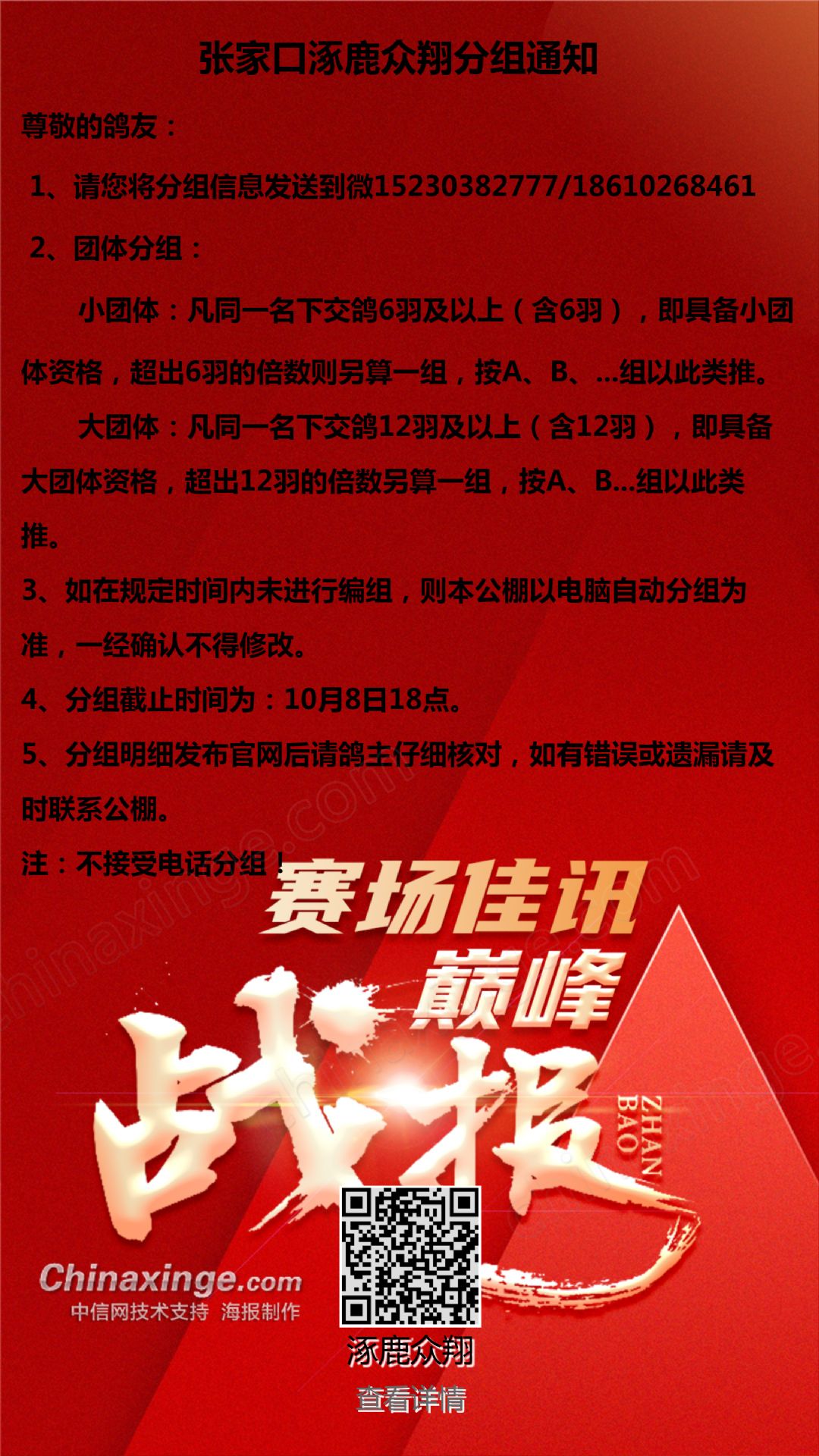众翔分组通知