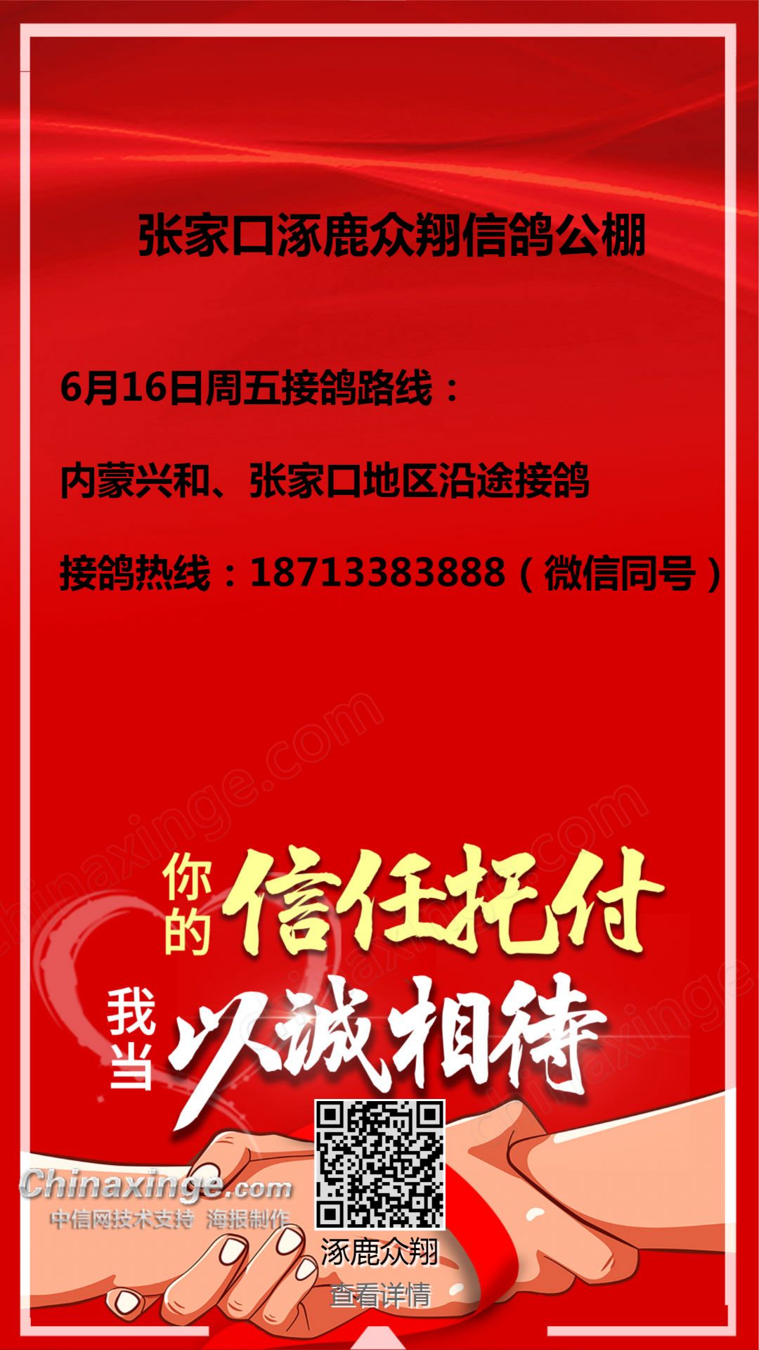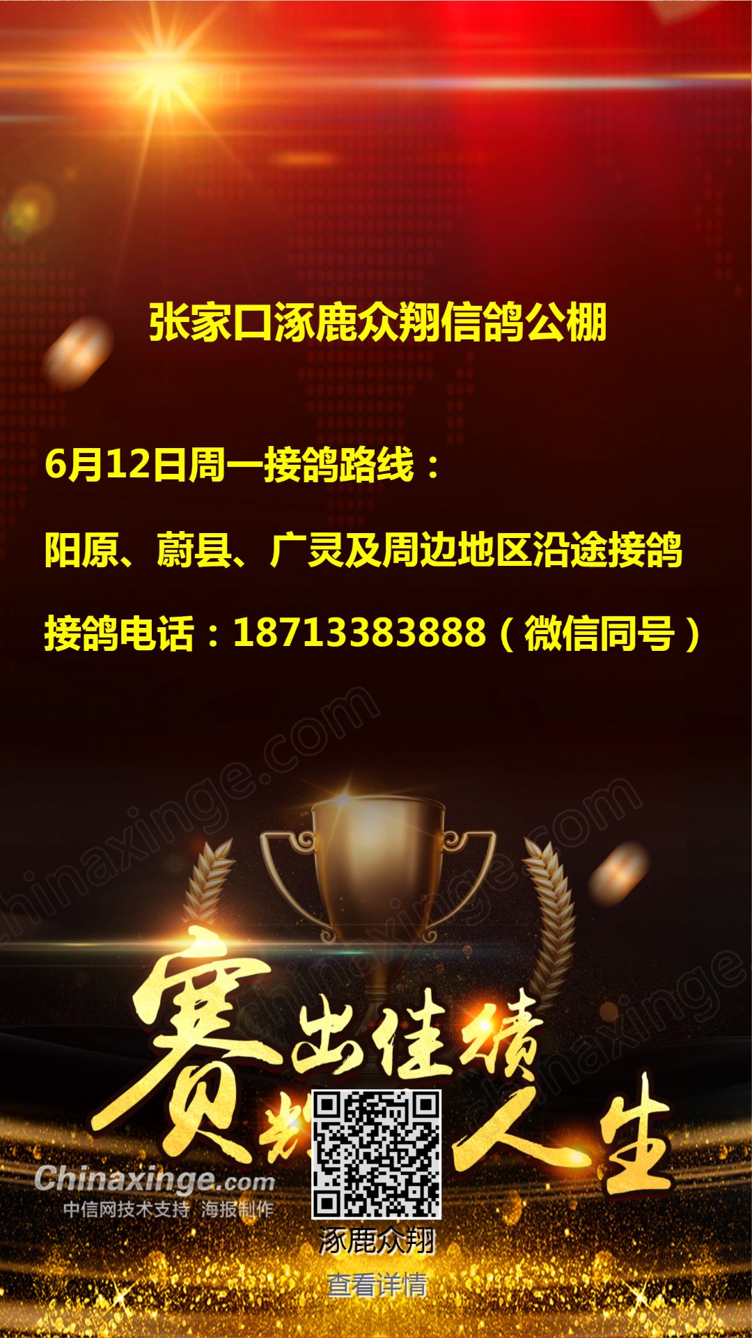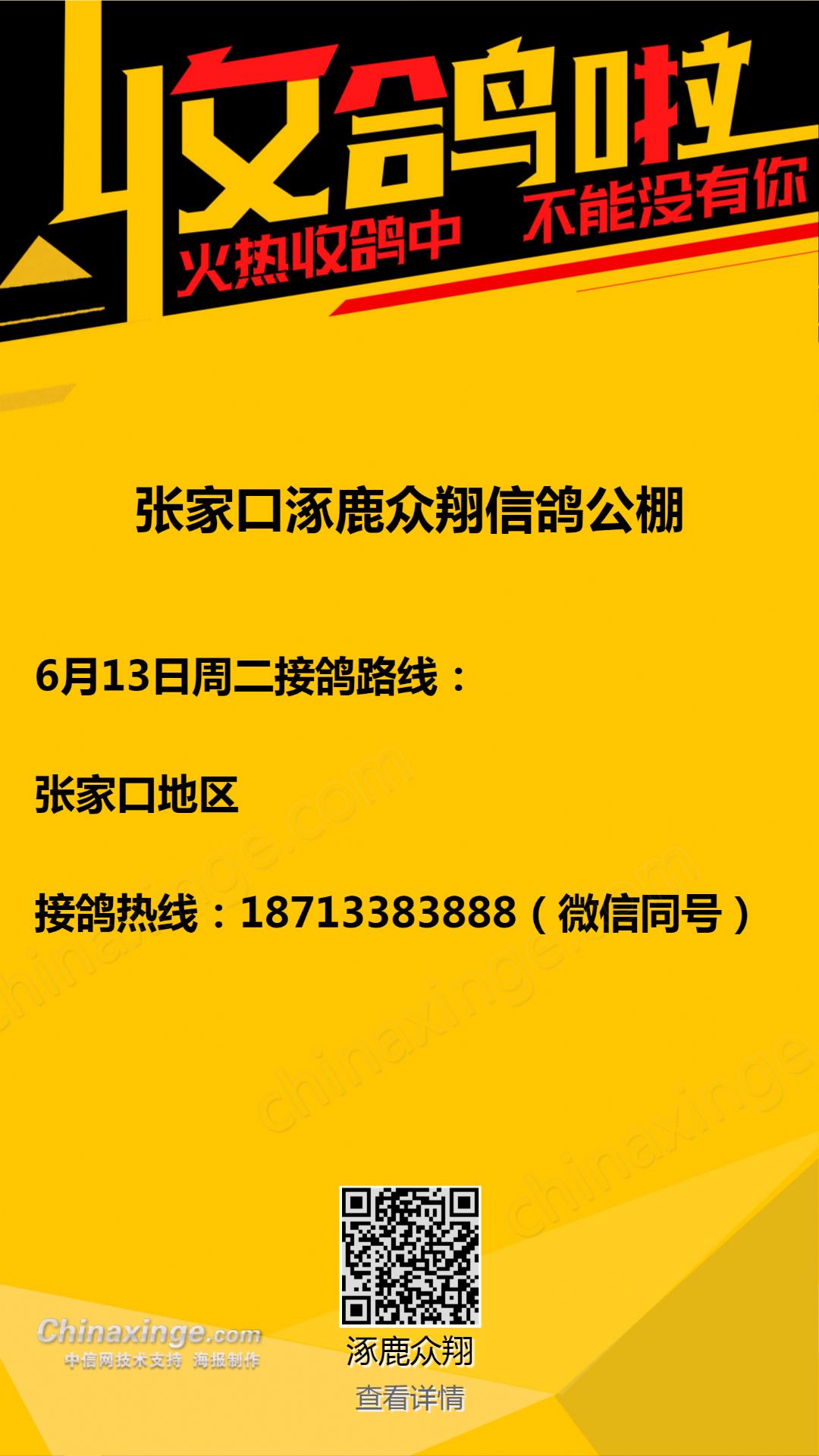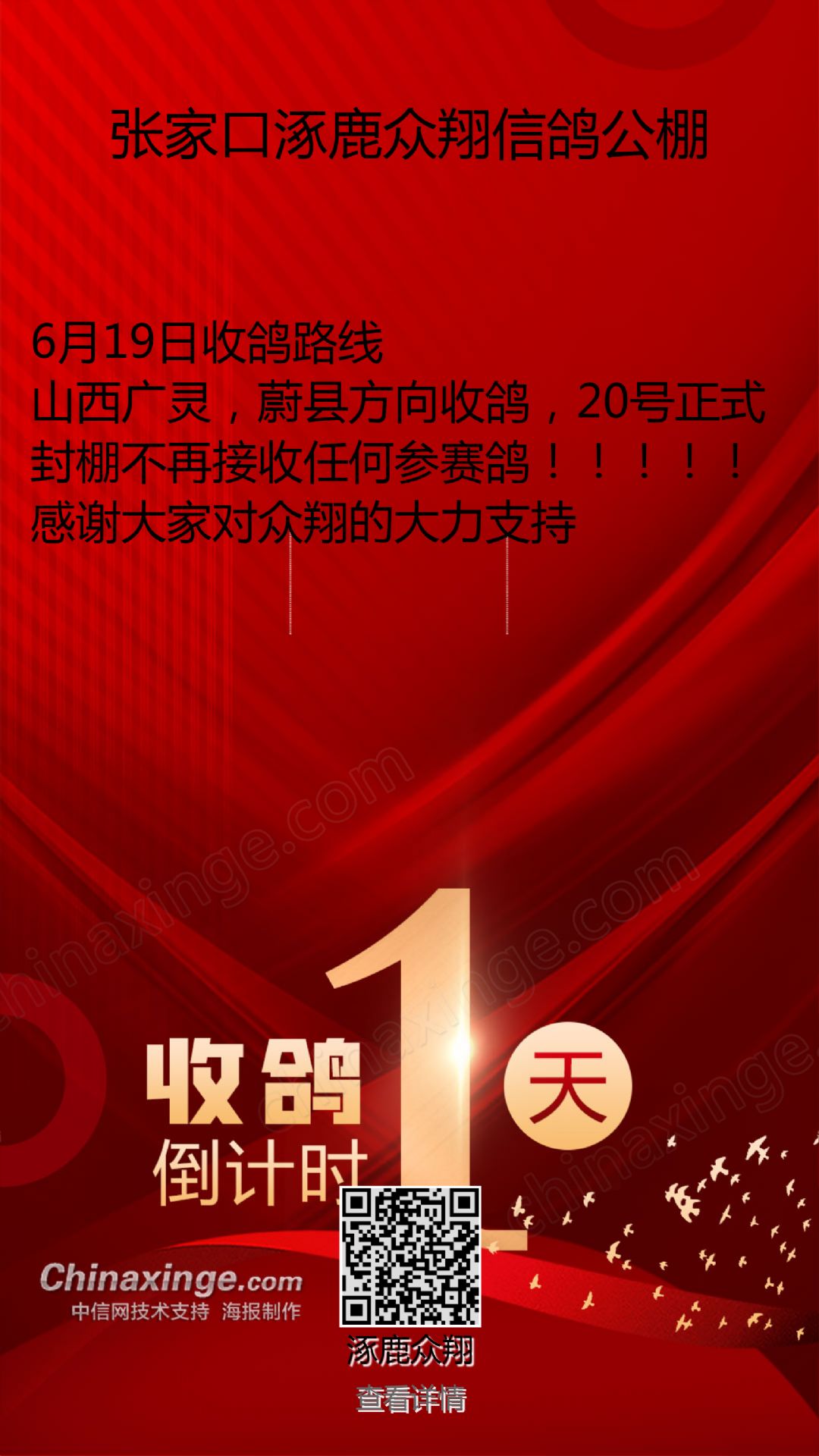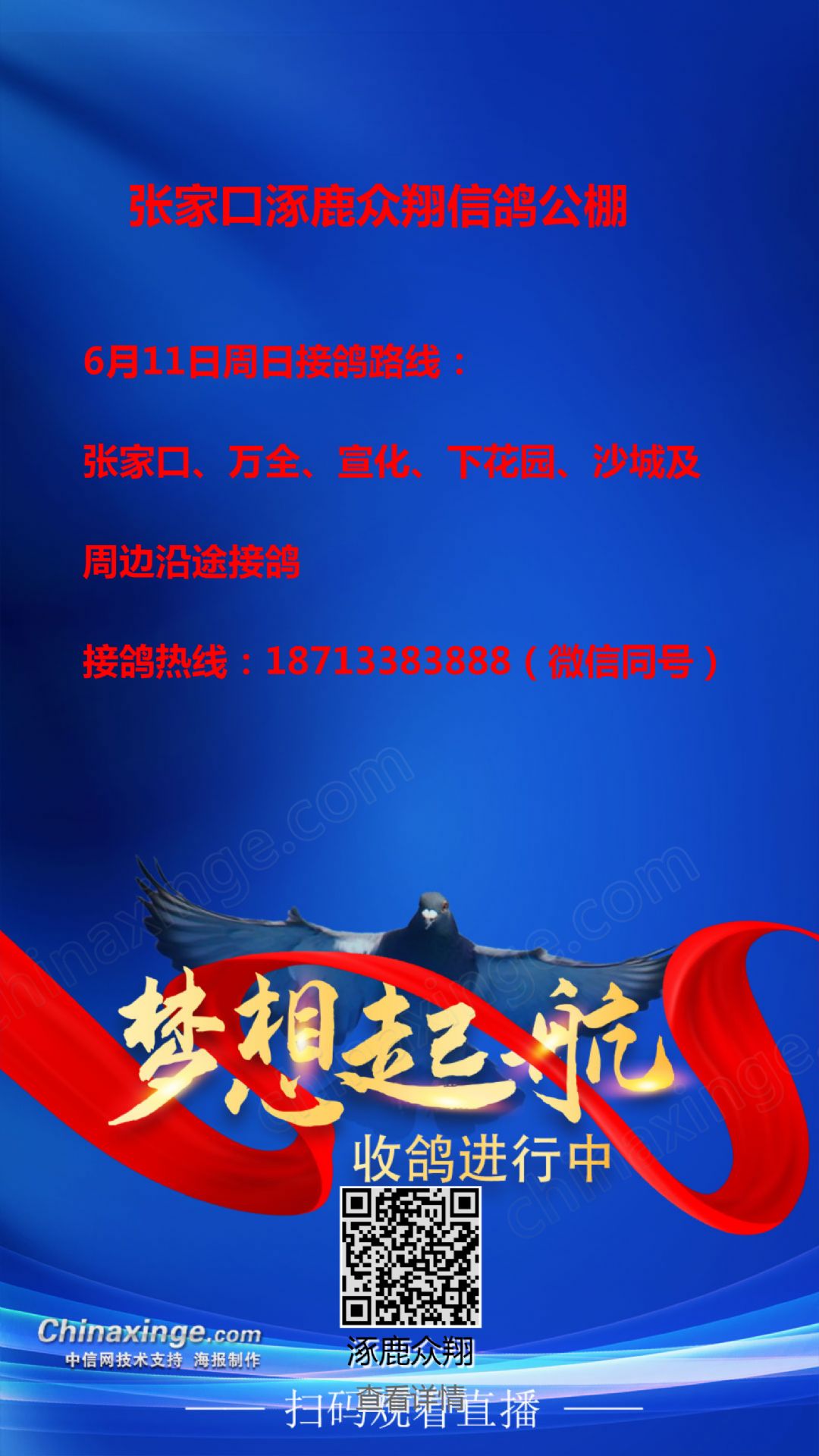 张家口涿鹿众翔信鸽公棚收鸽公告