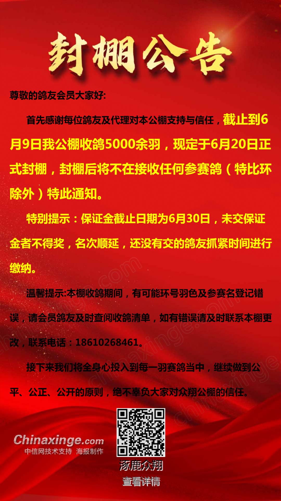 封棚公告