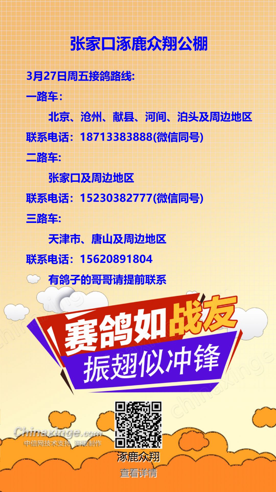 3月27日周五接鸽路线