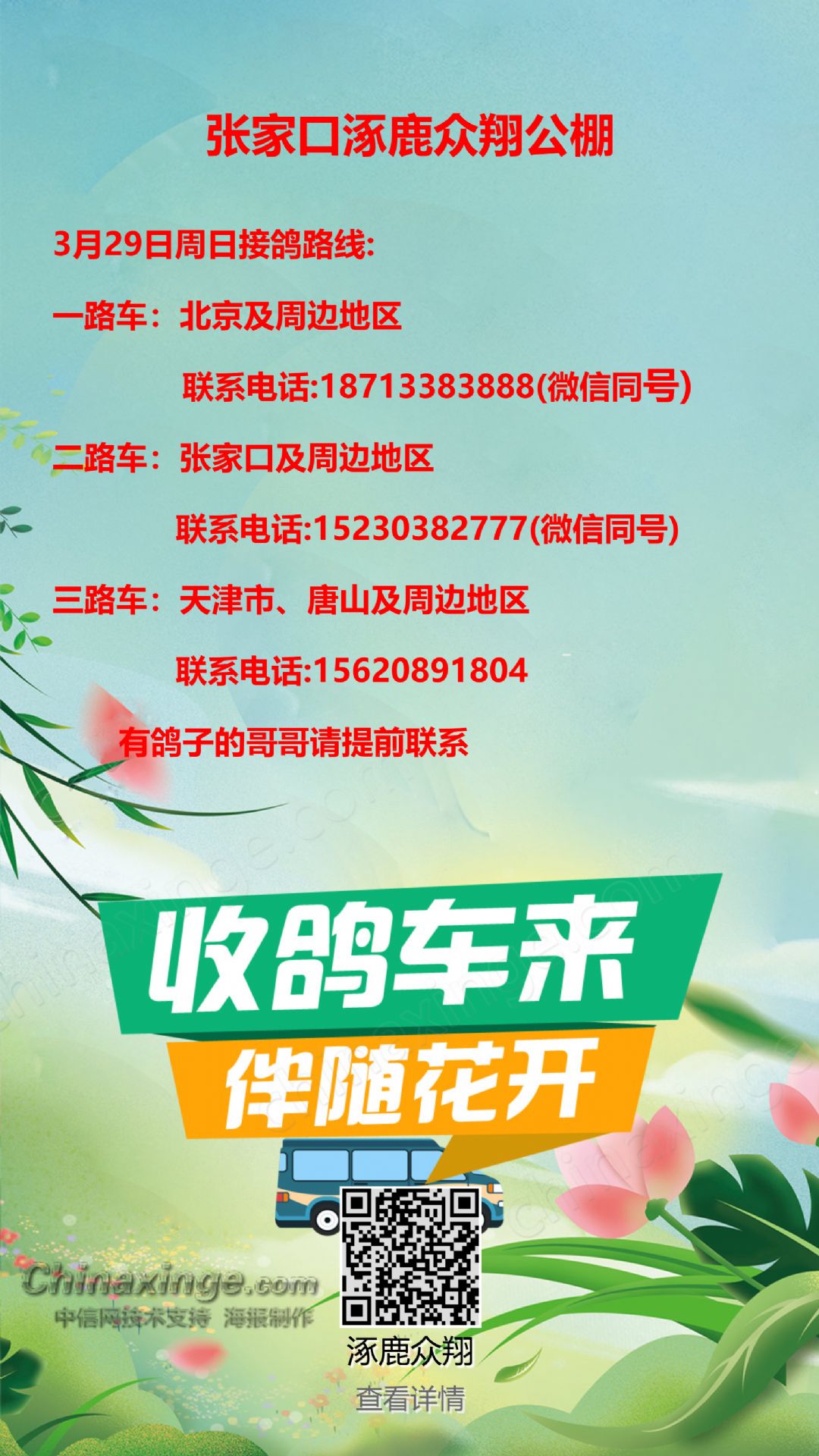 3月29日周日接鸽路线