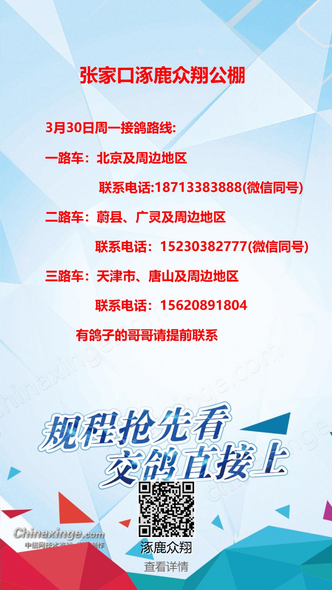 4月1日周三接鸽路线