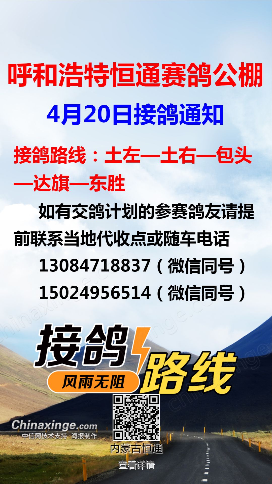 恒通赛鸽公棚4月20日包头方向接鸽通知