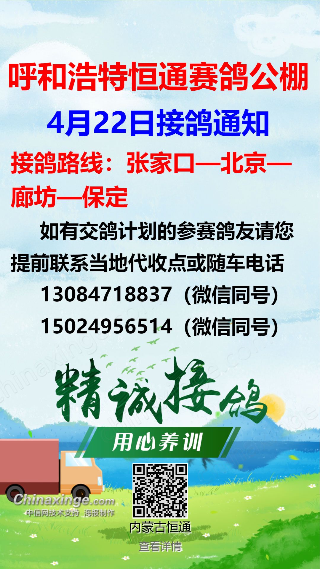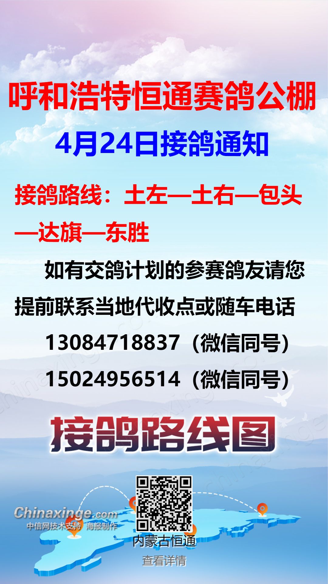 恒通赛鸽公棚4月24日包头方向接鸽通知