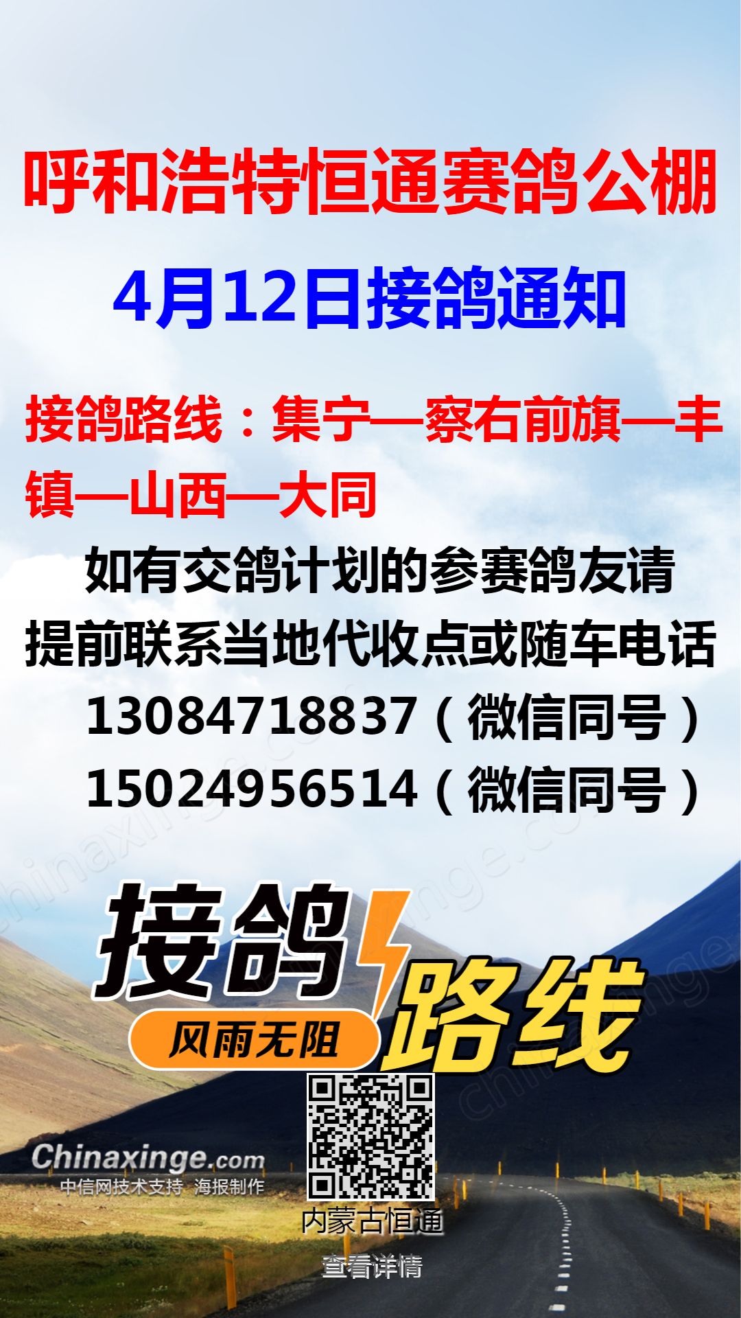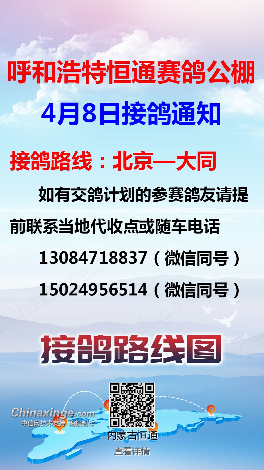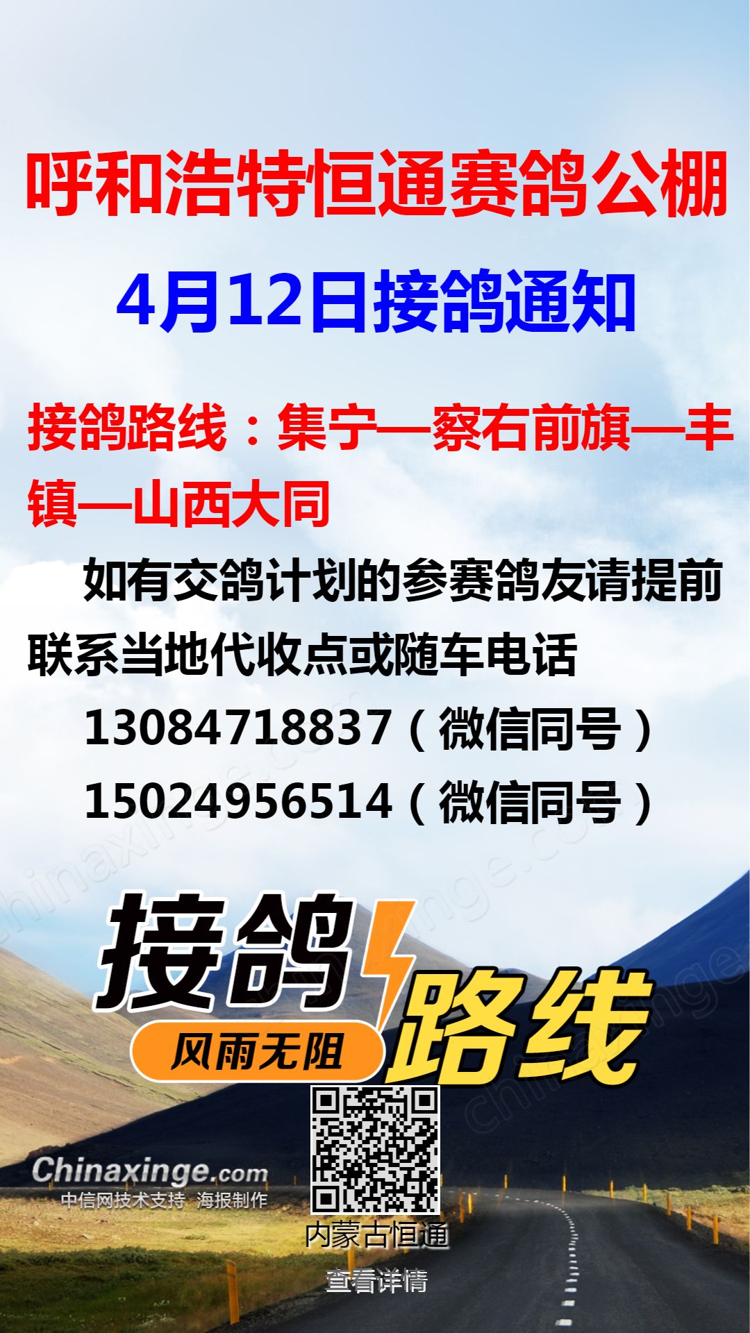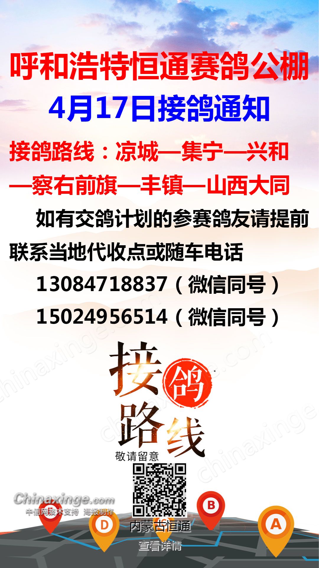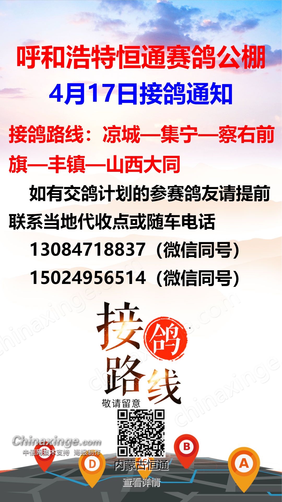 恒通赛鸽公棚4月17日集宁、大同方向接鸽通知