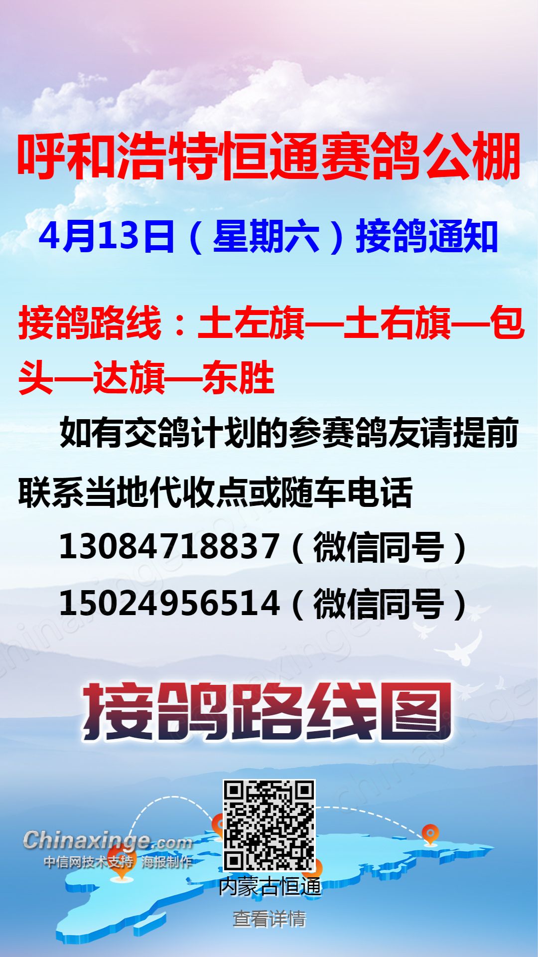 恒通赛鸽公棚4月13日包头方向接鸽通知