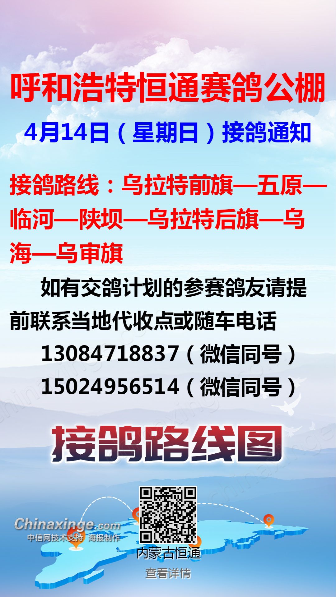 恒通赛鸽公棚4月18日包头方向接鸽通知