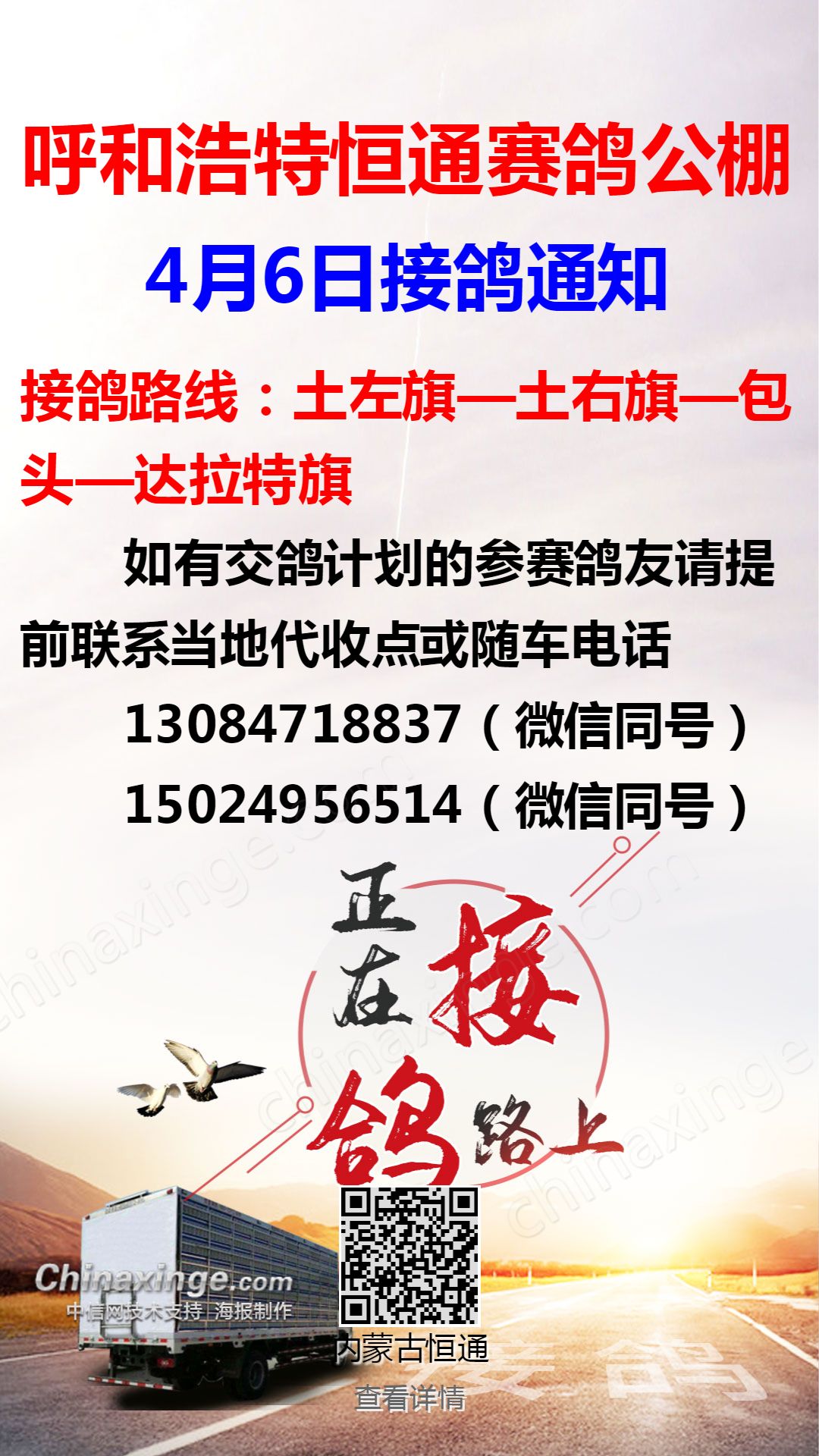 恒通赛鸽公棚4月6日包头方向接鸽通知