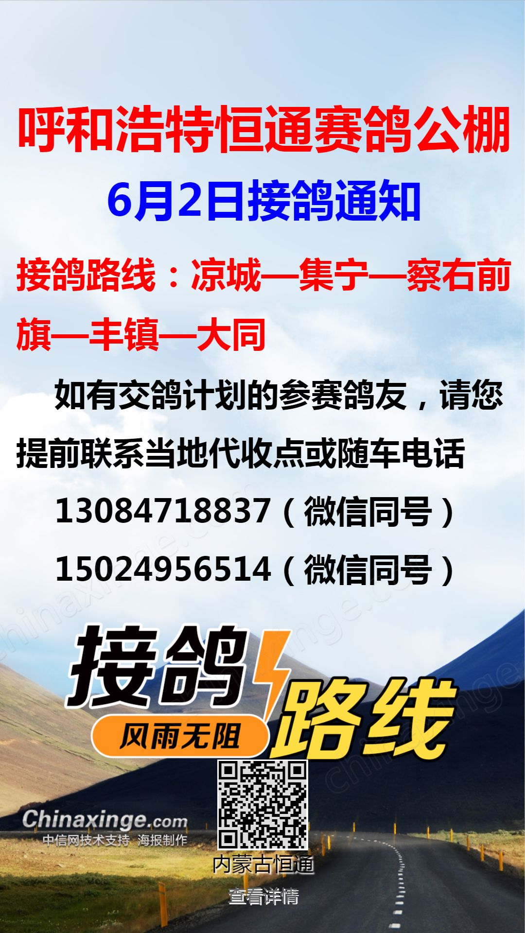 恒通赛鸽公棚6月2日集宁、大同方向接鸽通知