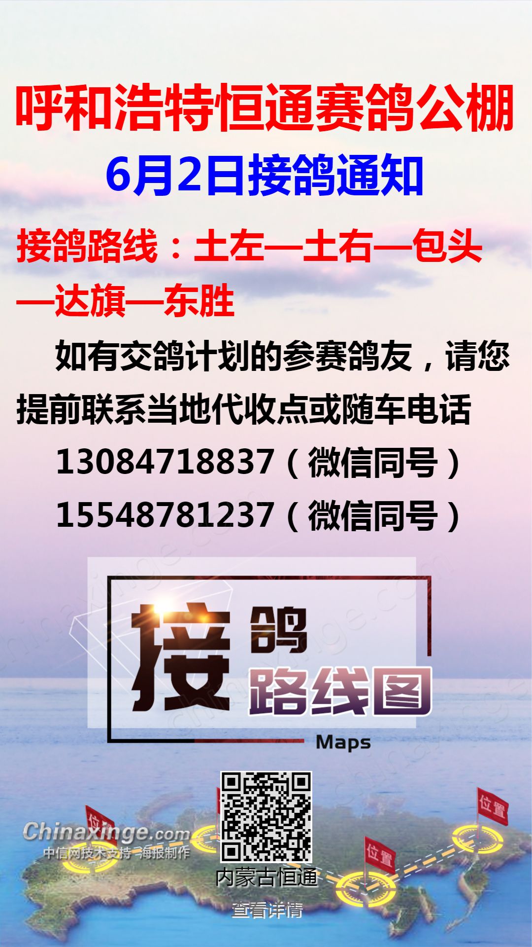 恒通赛鸽公棚6月2日包头方向接鸽通知