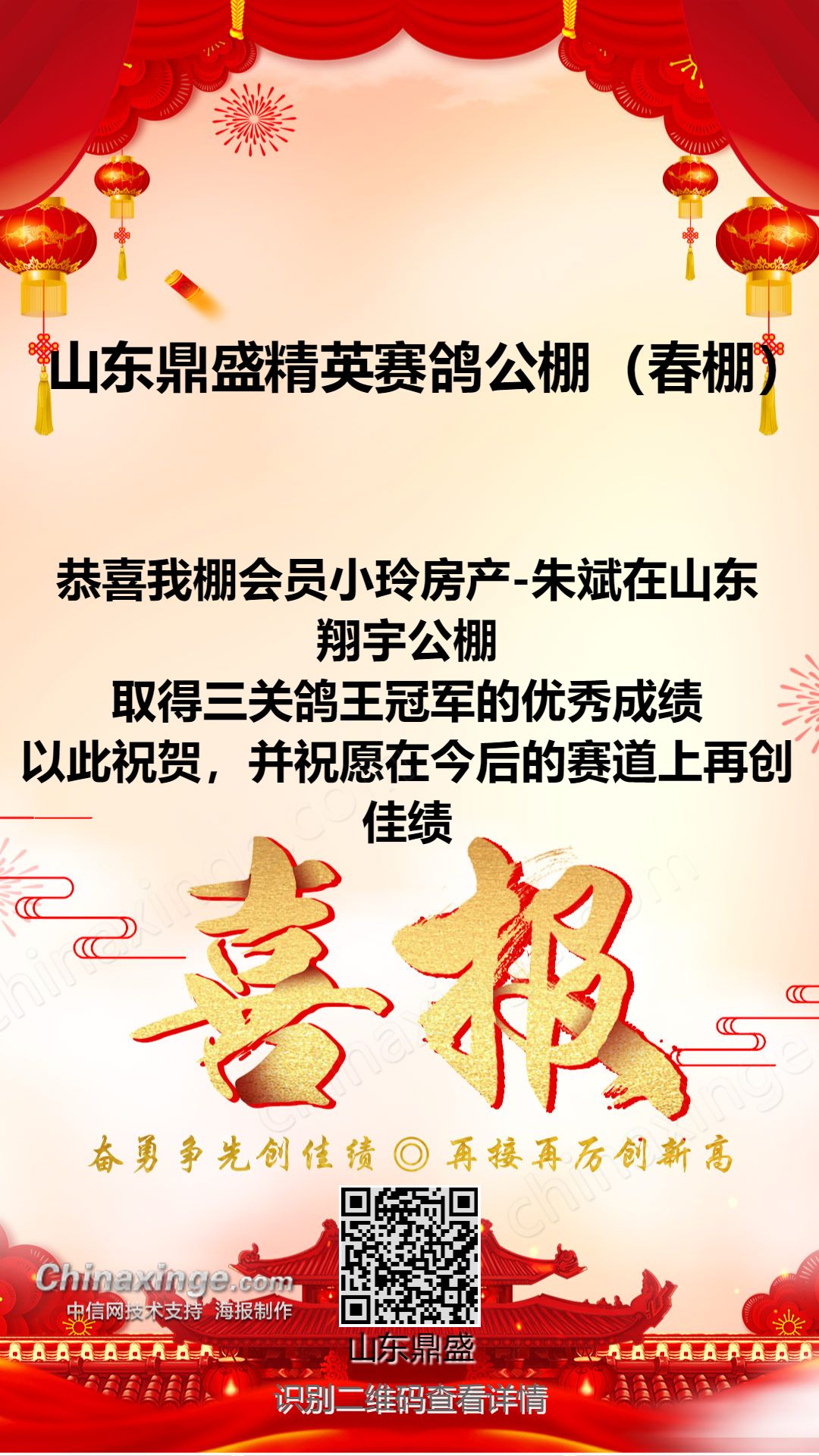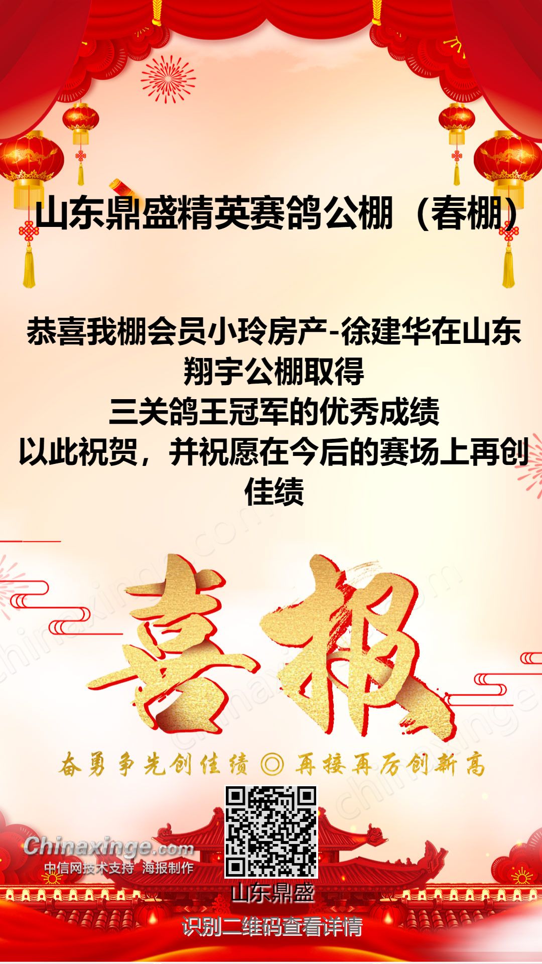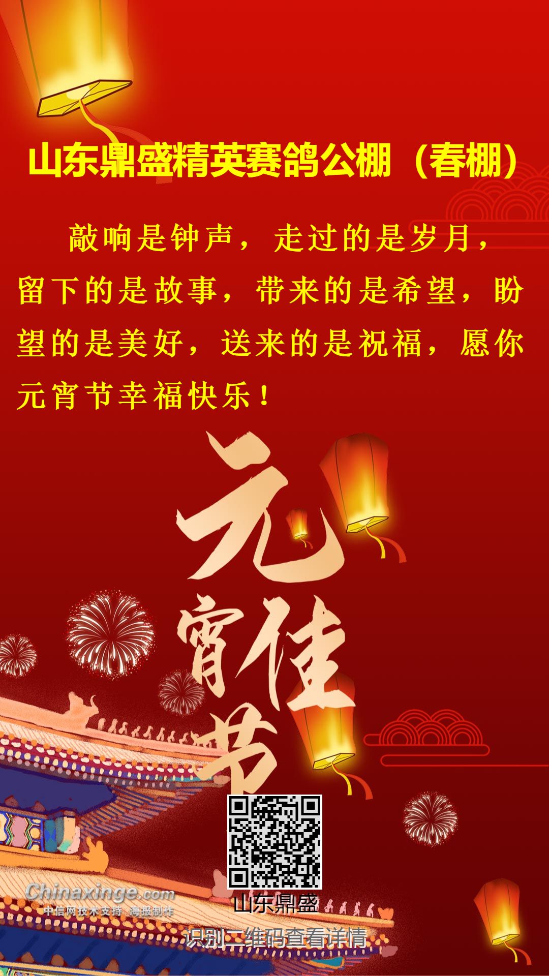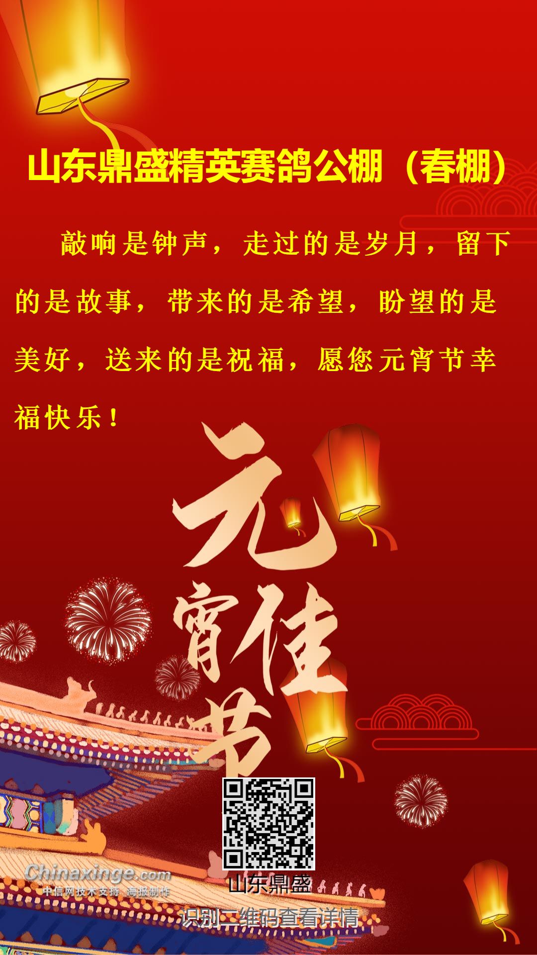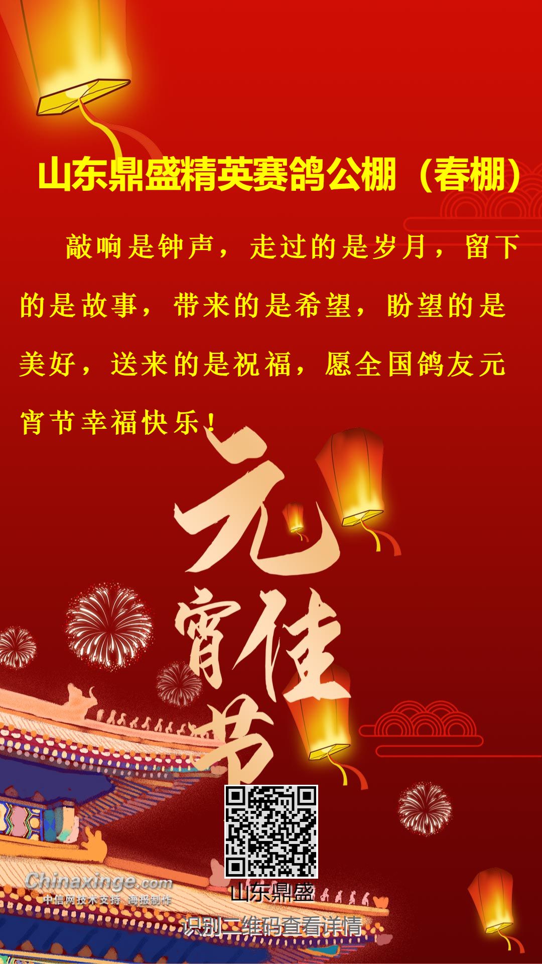 山东鼎盛精英赛鸽公棚(春棚)祝全国鸽友元宵节快乐