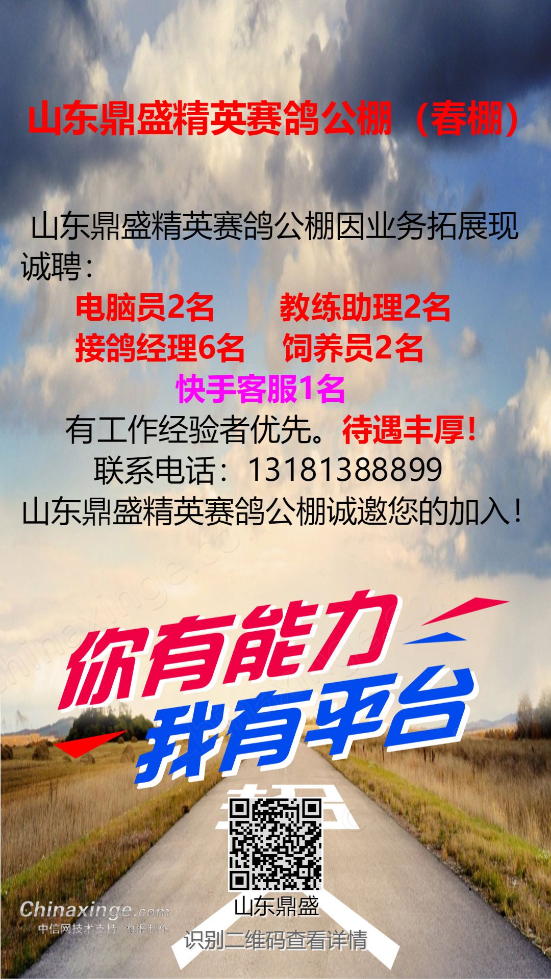 山东鼎盛精英赛鸽公棚(春棚) 招贤纳士