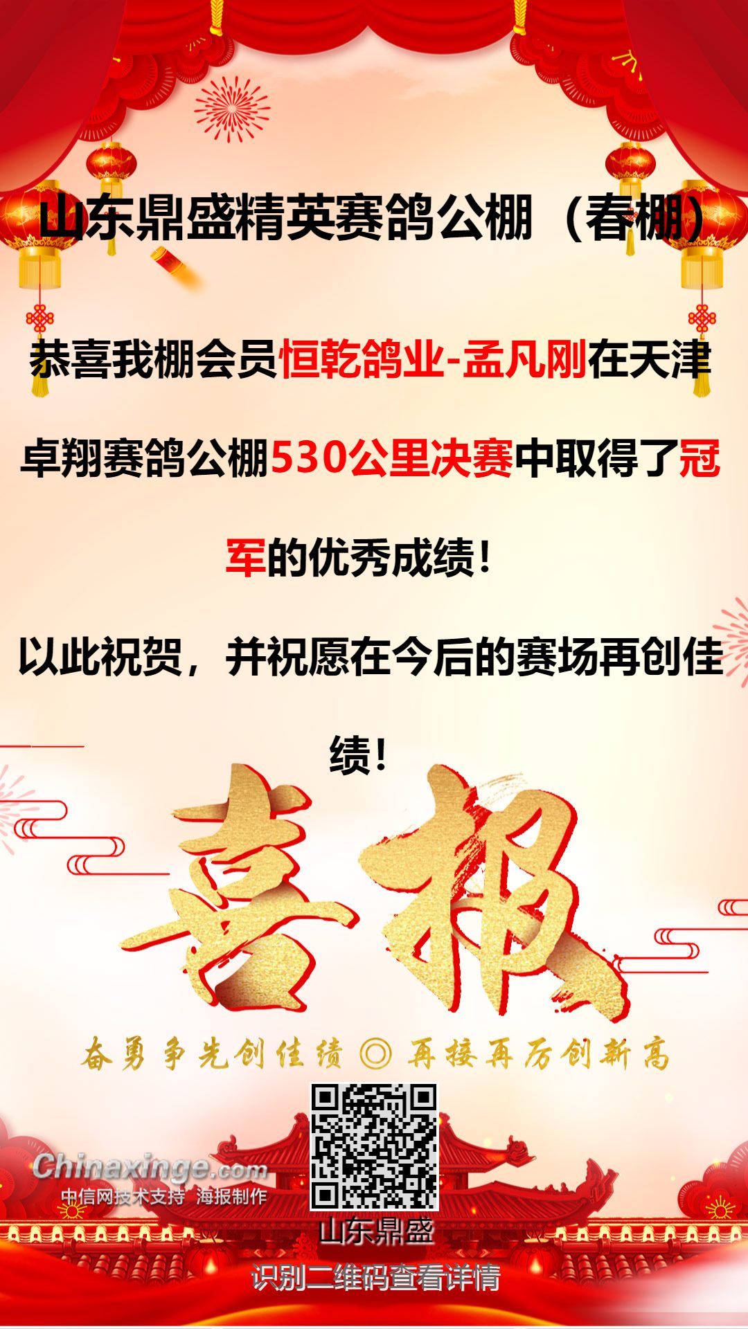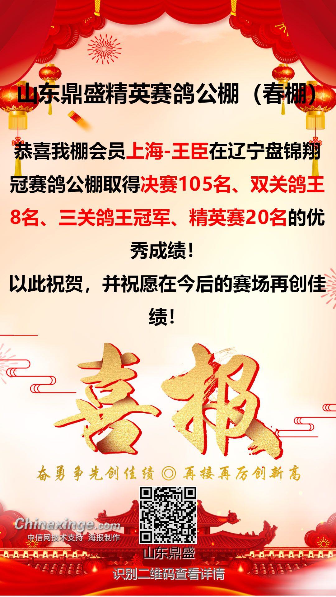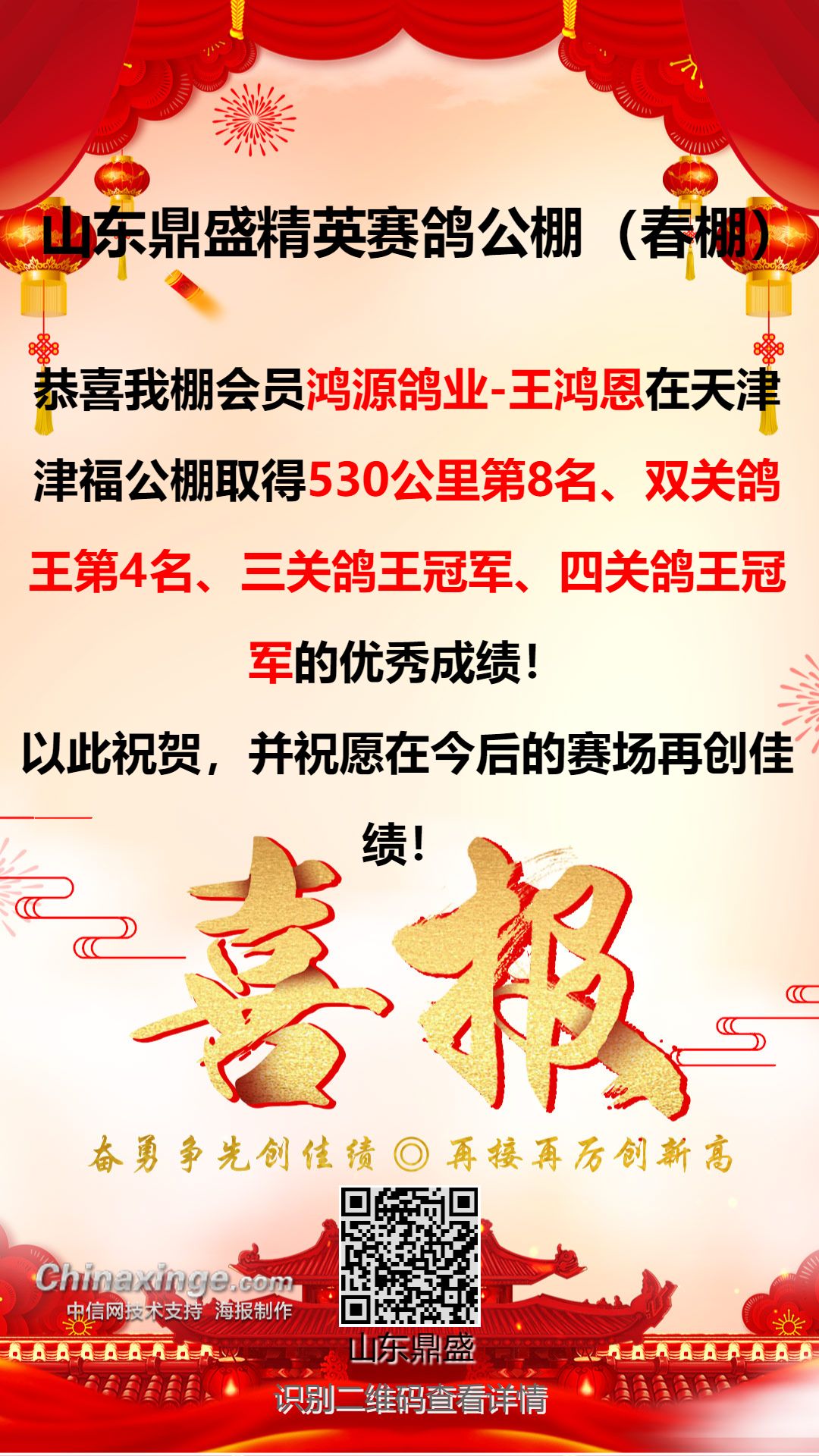 山东鼎盛精英赛鸽公棚祝全国鸽友元旦快乐!!!
