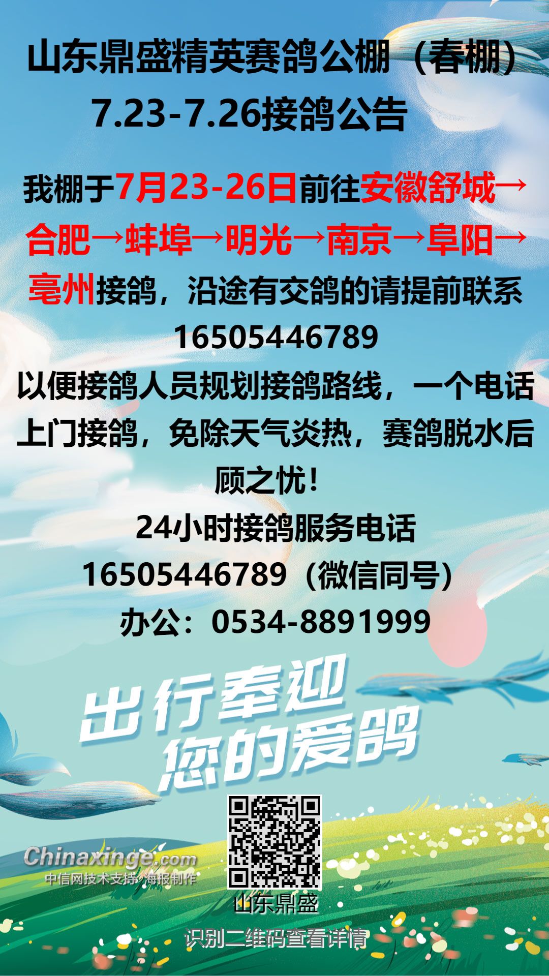 山东鼎盛精英赛鸽公棚(春棚) 7.23-7.25赴安徽接鸽安排