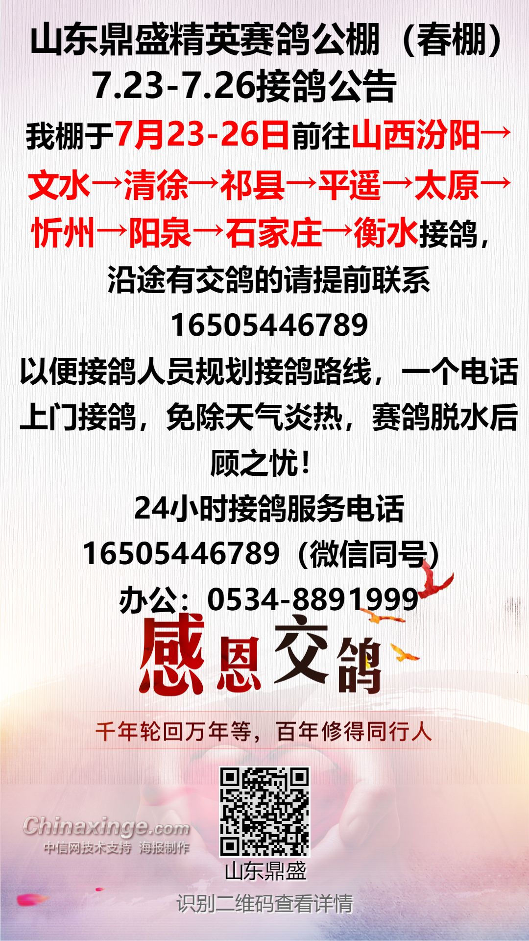 山东鼎盛精英赛鸽公棚(春棚) 7.23-7.26赴山西接鸽安排