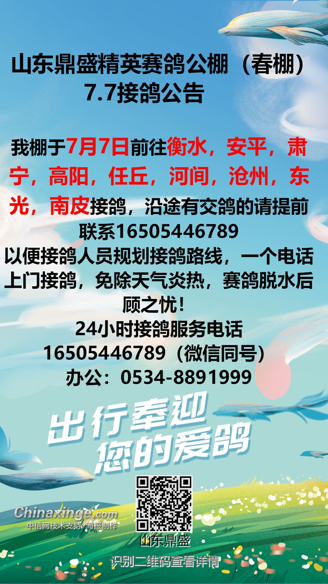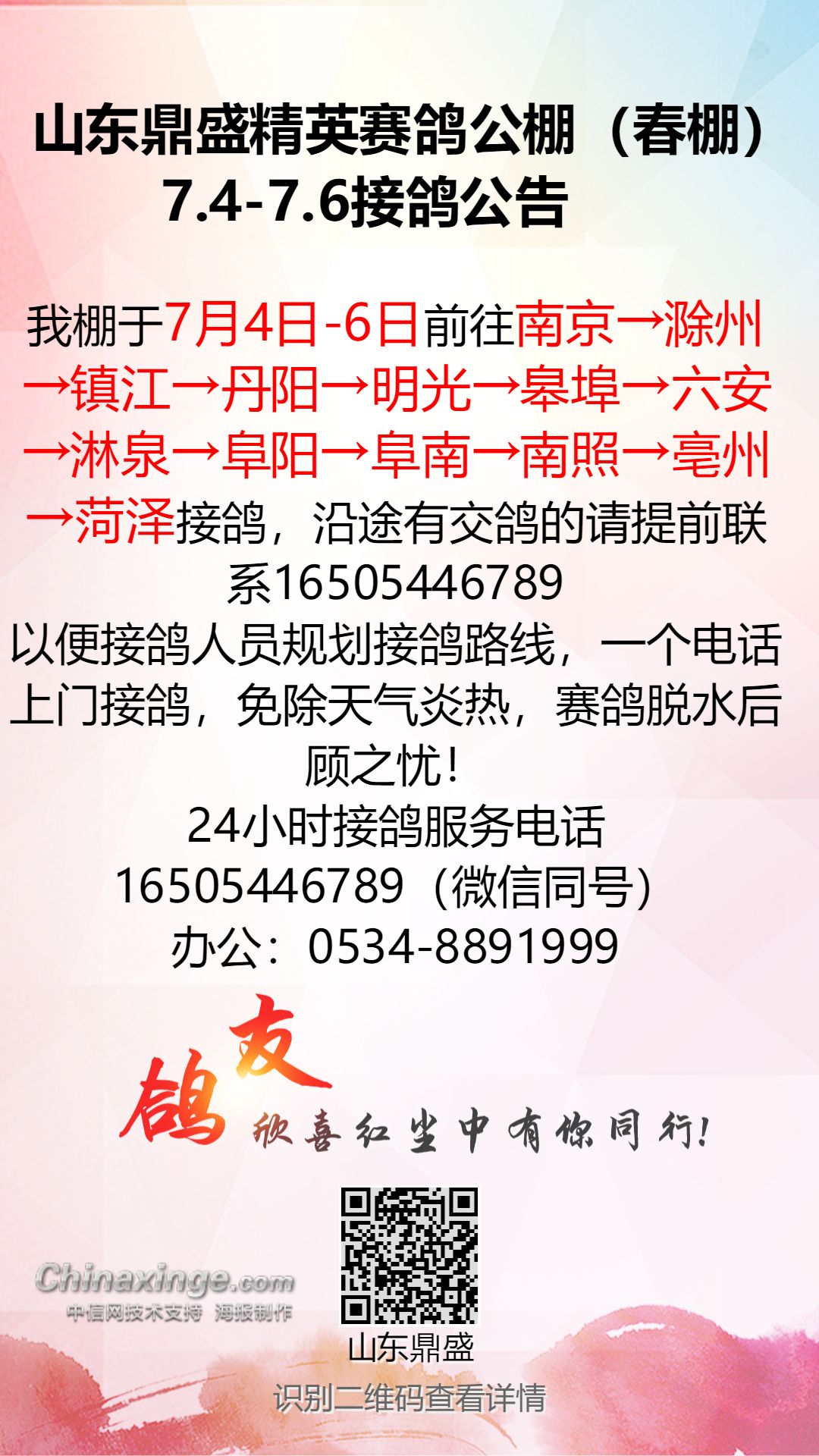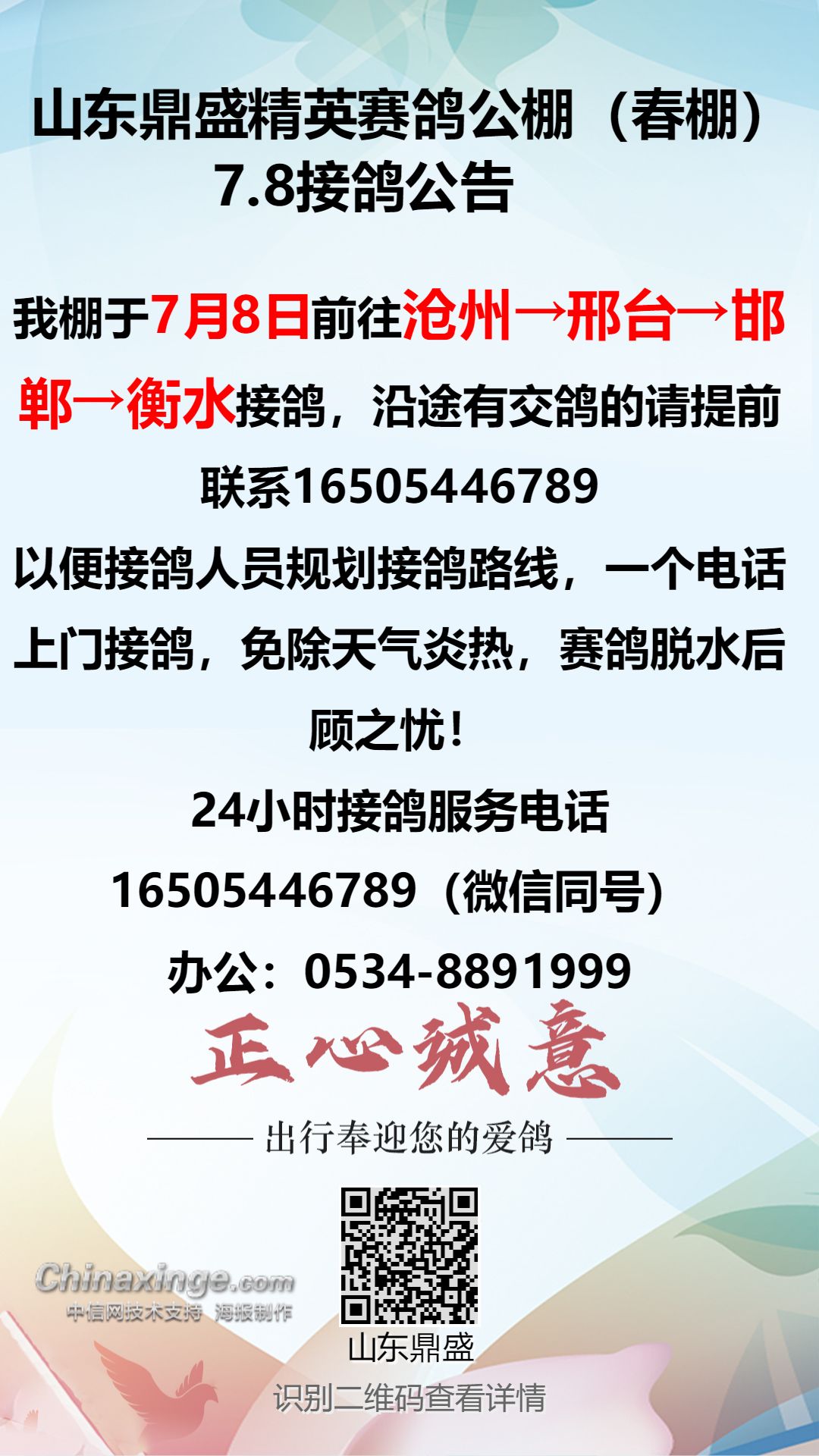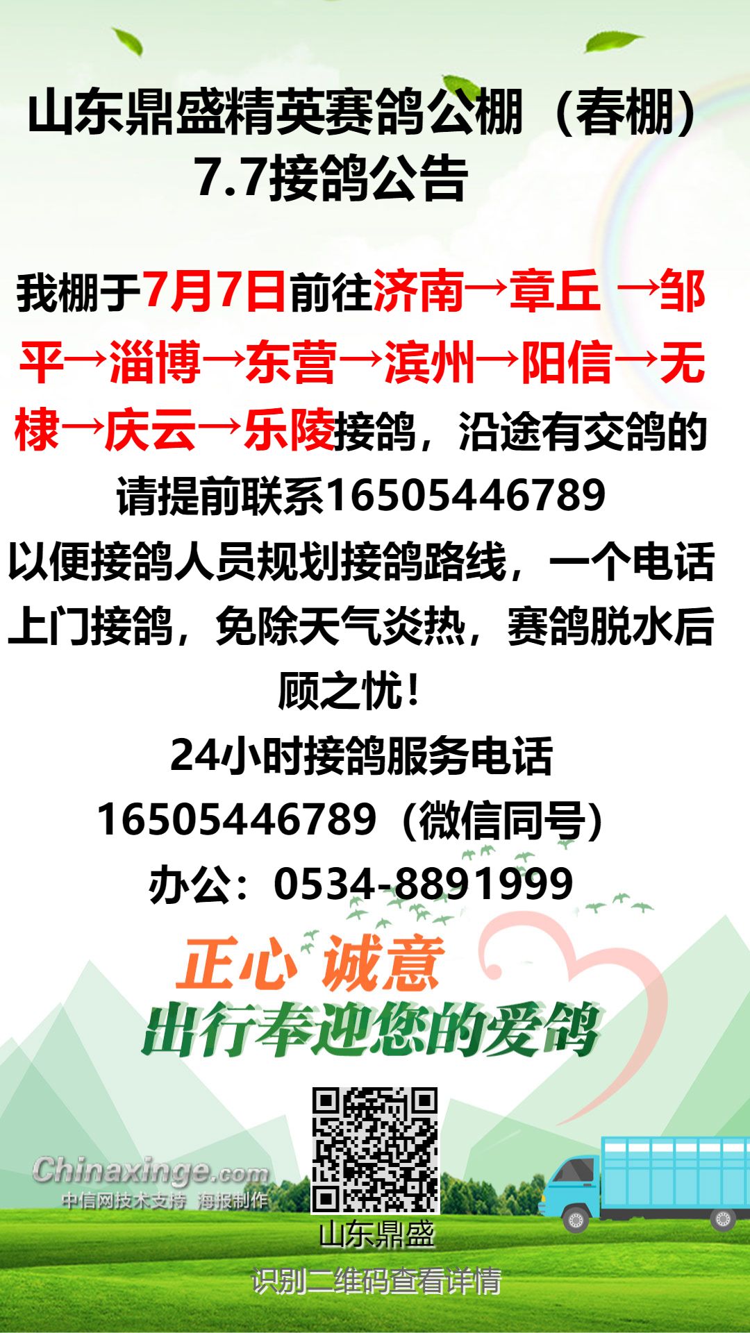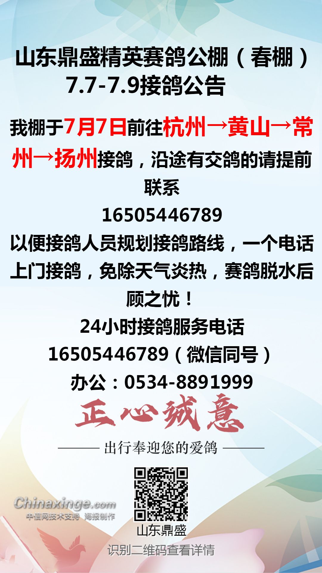 山东鼎盛精英赛鸽公棚(春棚) 7.7-7.9赴杭州、江苏接鸽安排