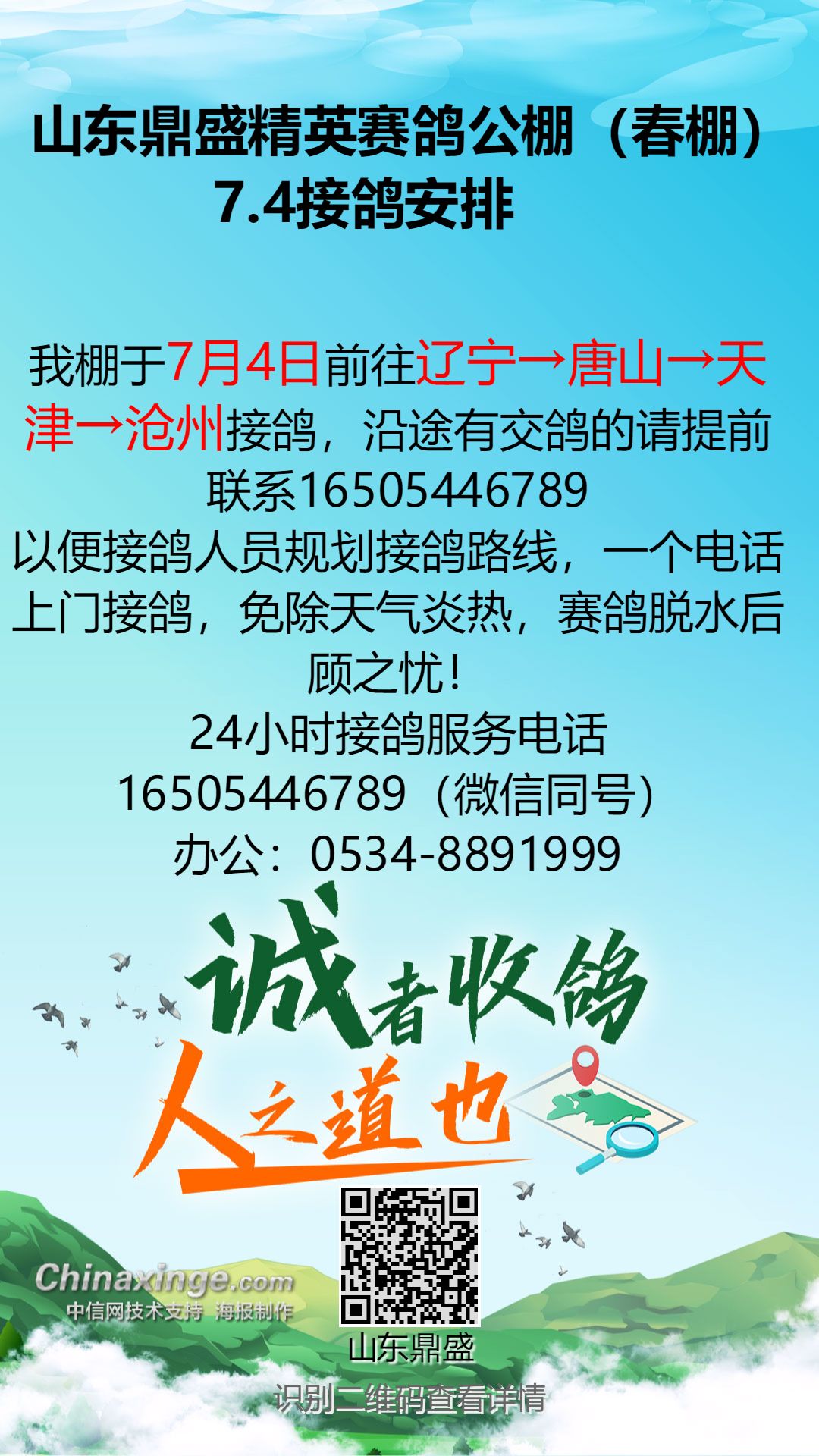 山东鼎盛精英赛鸽公棚(春棚) 7.4赴天津接鸽安排