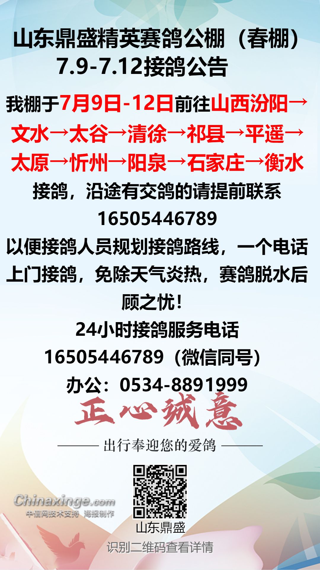 山东鼎盛精英赛鸽公棚(春棚) 7.9-7.12赴山西接鸽安排