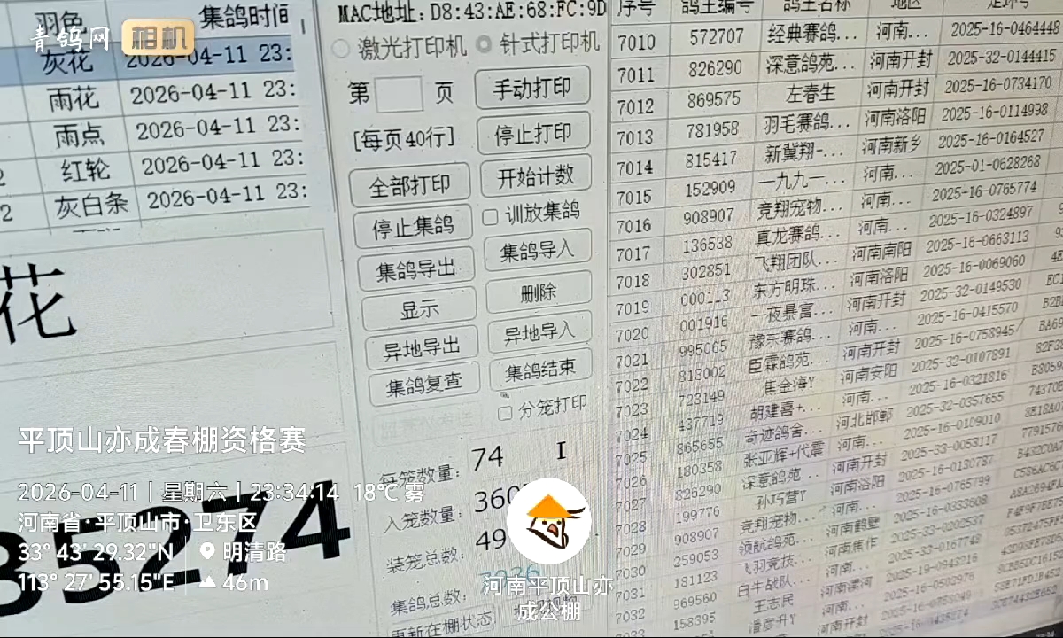 河南平顶山亦成春棚资格赛集鸽结束裁判验棚