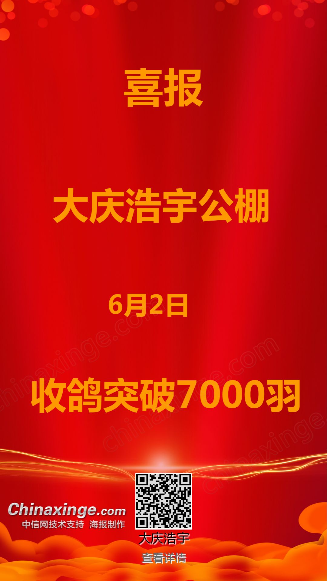 祝贺大庆浩宇公棚7号收鸽突破8000羽