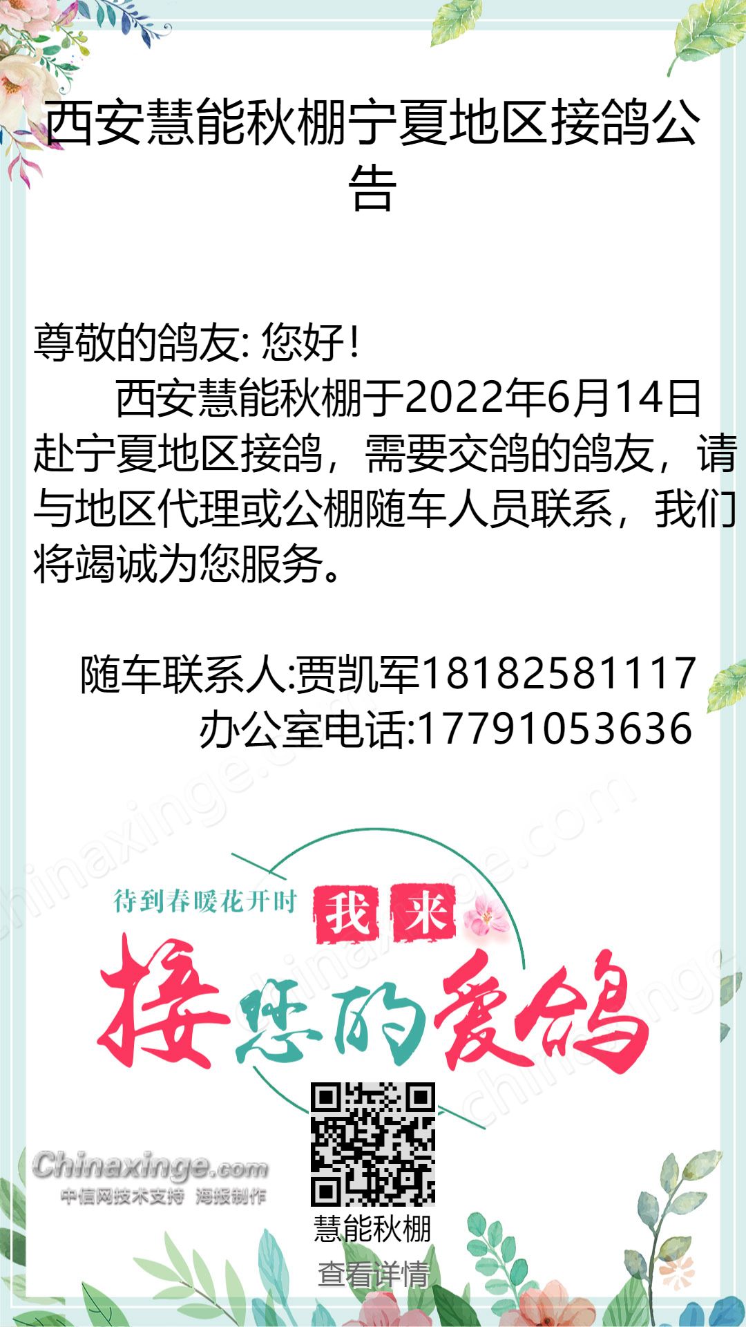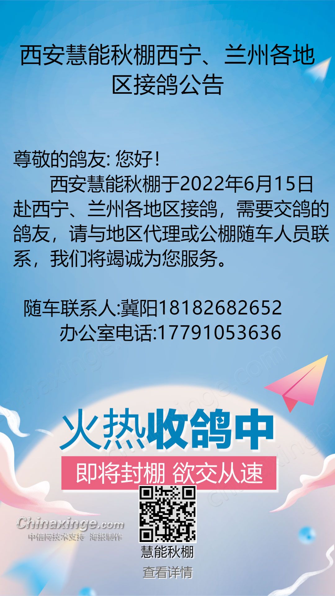 西安慧能秋棚西宁、兰州各地区接鸽公告