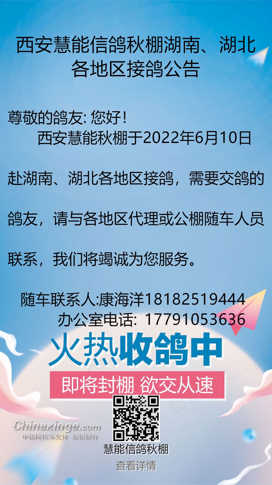 西安慧能信鸽秋棚湖南、湖北各地区接鸽公告