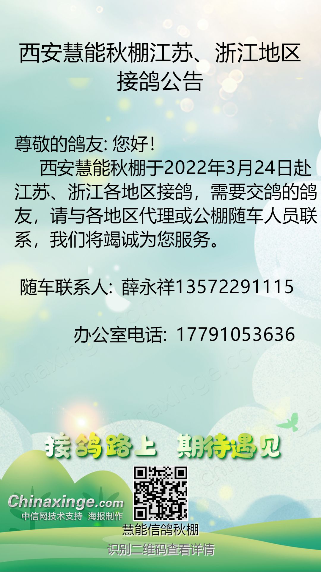 西安慧能秋棚江苏、浙江地区接鸽公告